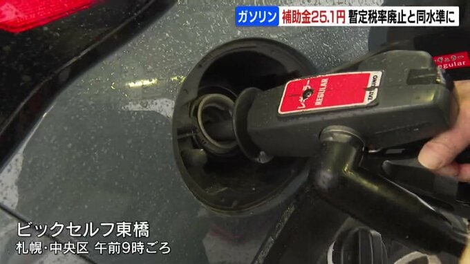 11日からは5円ほど増額され、1リットルあたり25・1円となり、暫定税率が廃止された場合と同じ水準となりました。