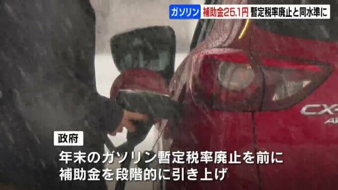 政府は年末のガソリン暫定税率廃止を前に補助金を段階的に引き上げています。