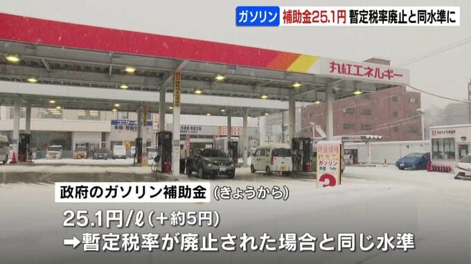 政府のガソリンの補助金が11日から1リットル当たり5円ほど引き上げられ、暫定税率が廃止された際と同じ水準となりました。