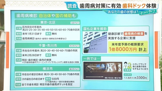歯周病対策には国も力を入れており、健康診断で歯周病の検査を実施する企業に支援を行っています。2026年度予算の概算要求は1億8000万円計上されています。