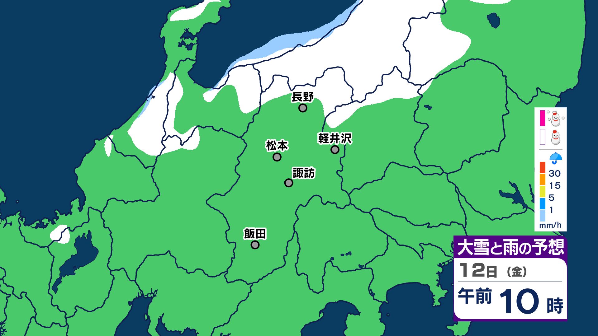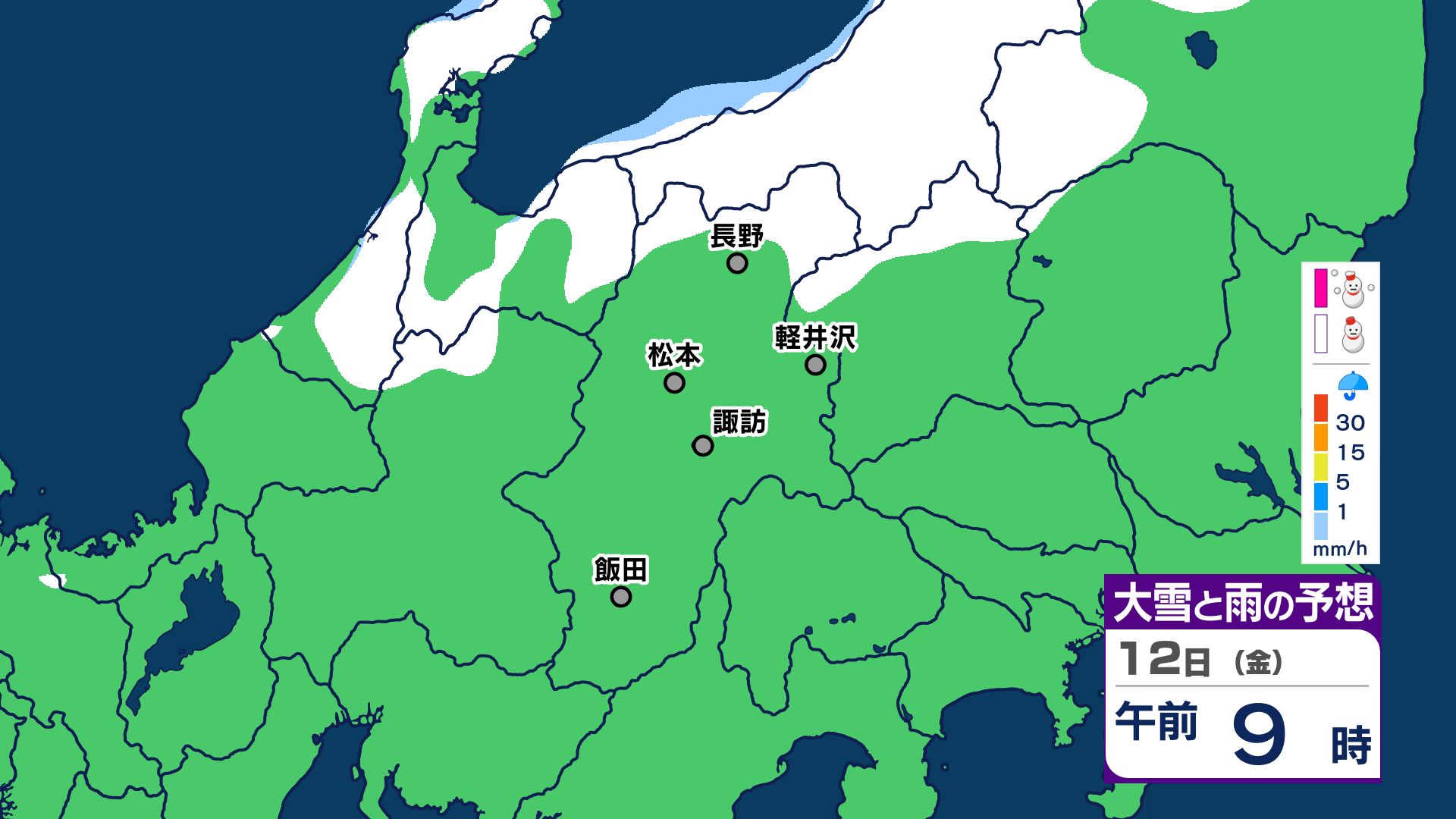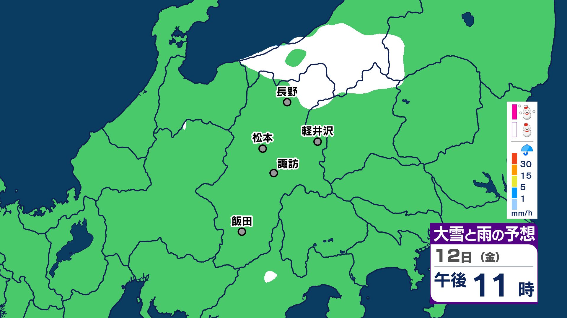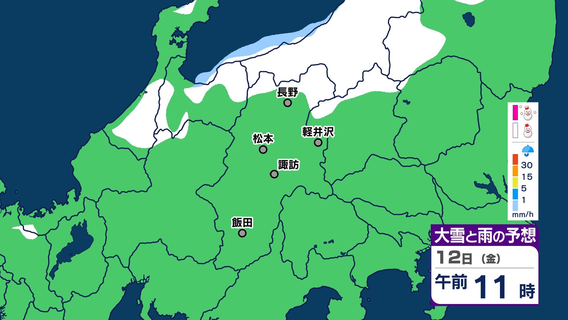 【大雪情報】あす12日は「警報級の大雪」の可能性 長野県内は路面の凍結や交通障害に十分注意【1時間ごとの雪のシミュレーション掲載】