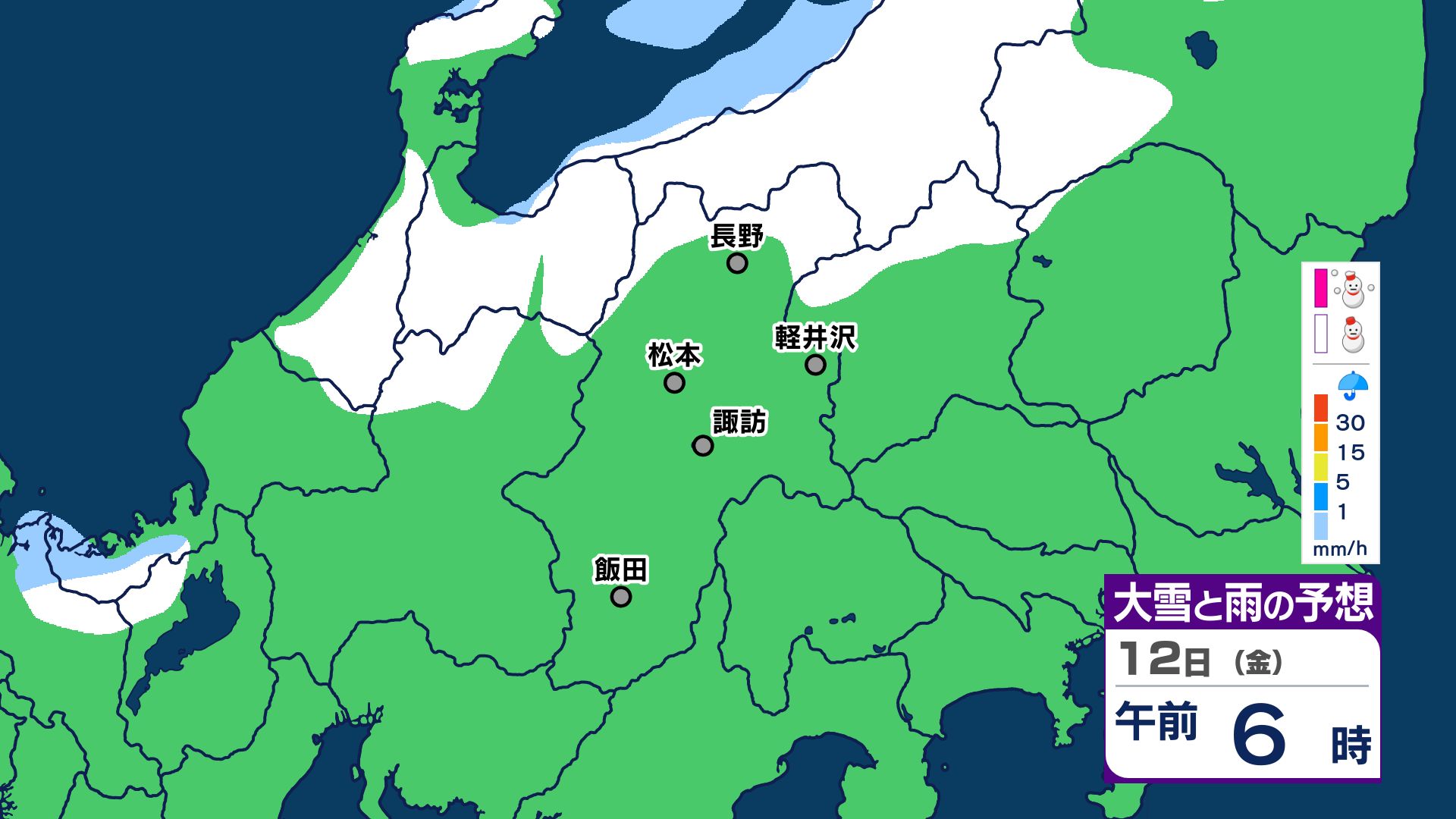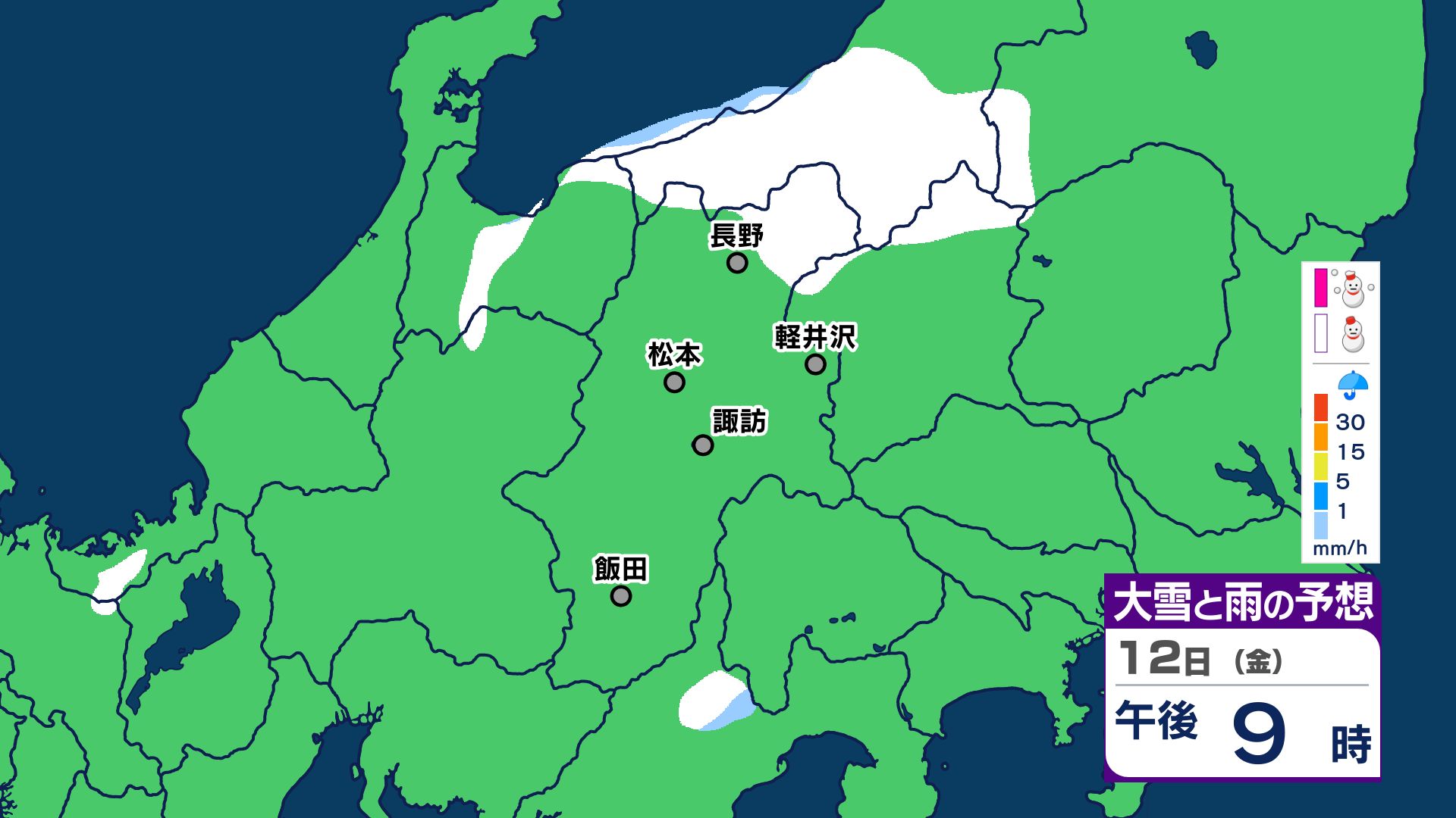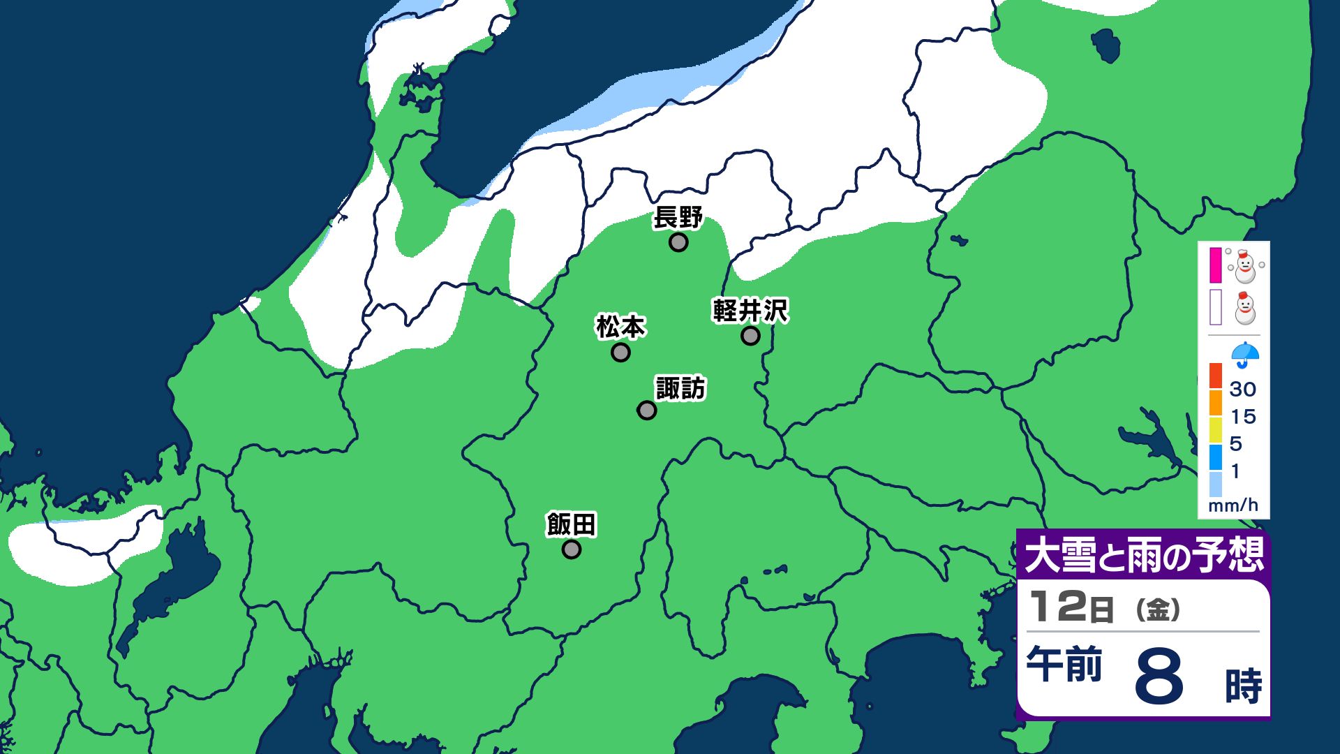 【大雪情報】あす12日は「警報級の大雪」の可能性 長野県内は路面の凍結や交通障害に十分注意【1時間ごとの雪のシミュレーション掲載】