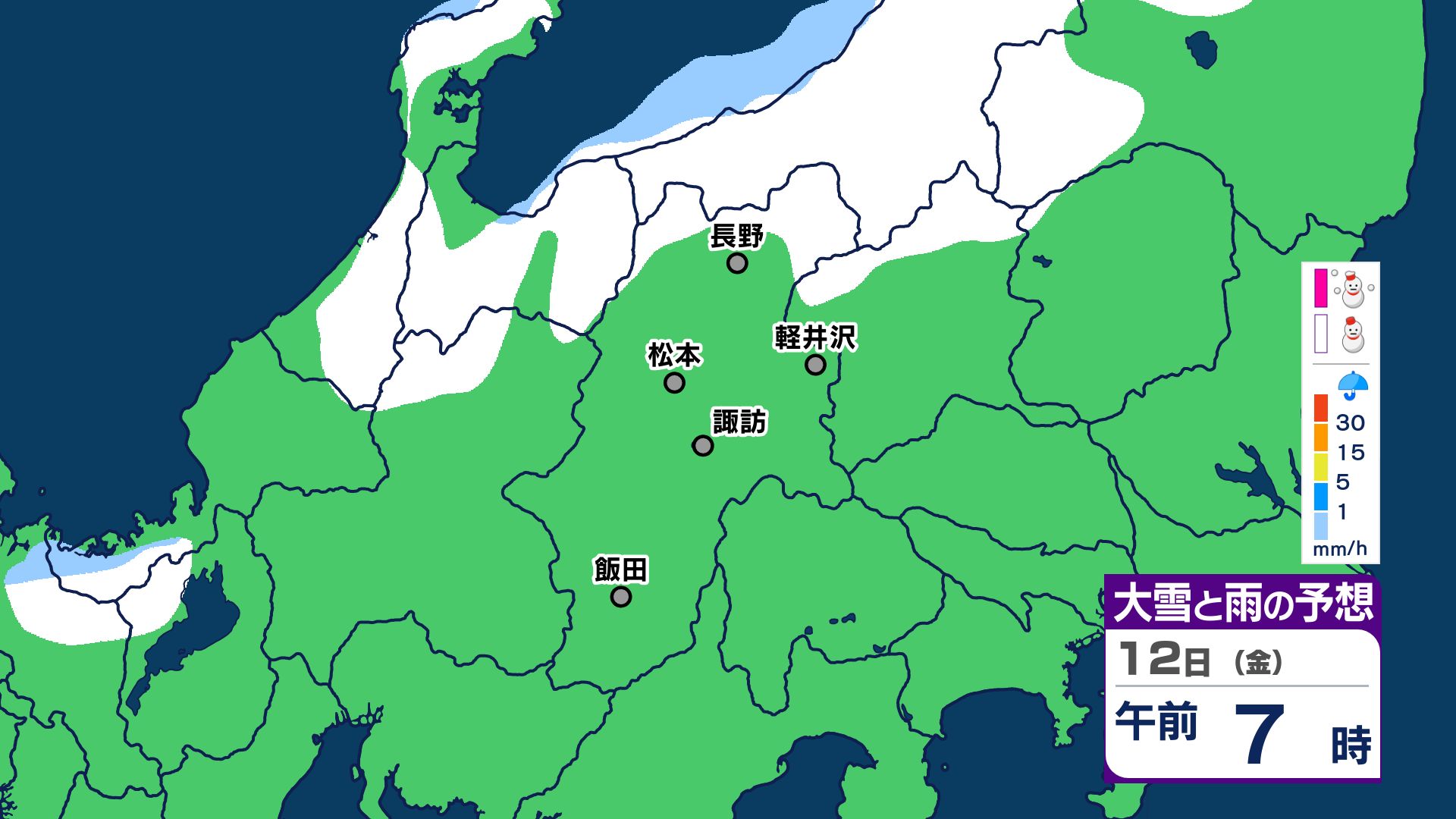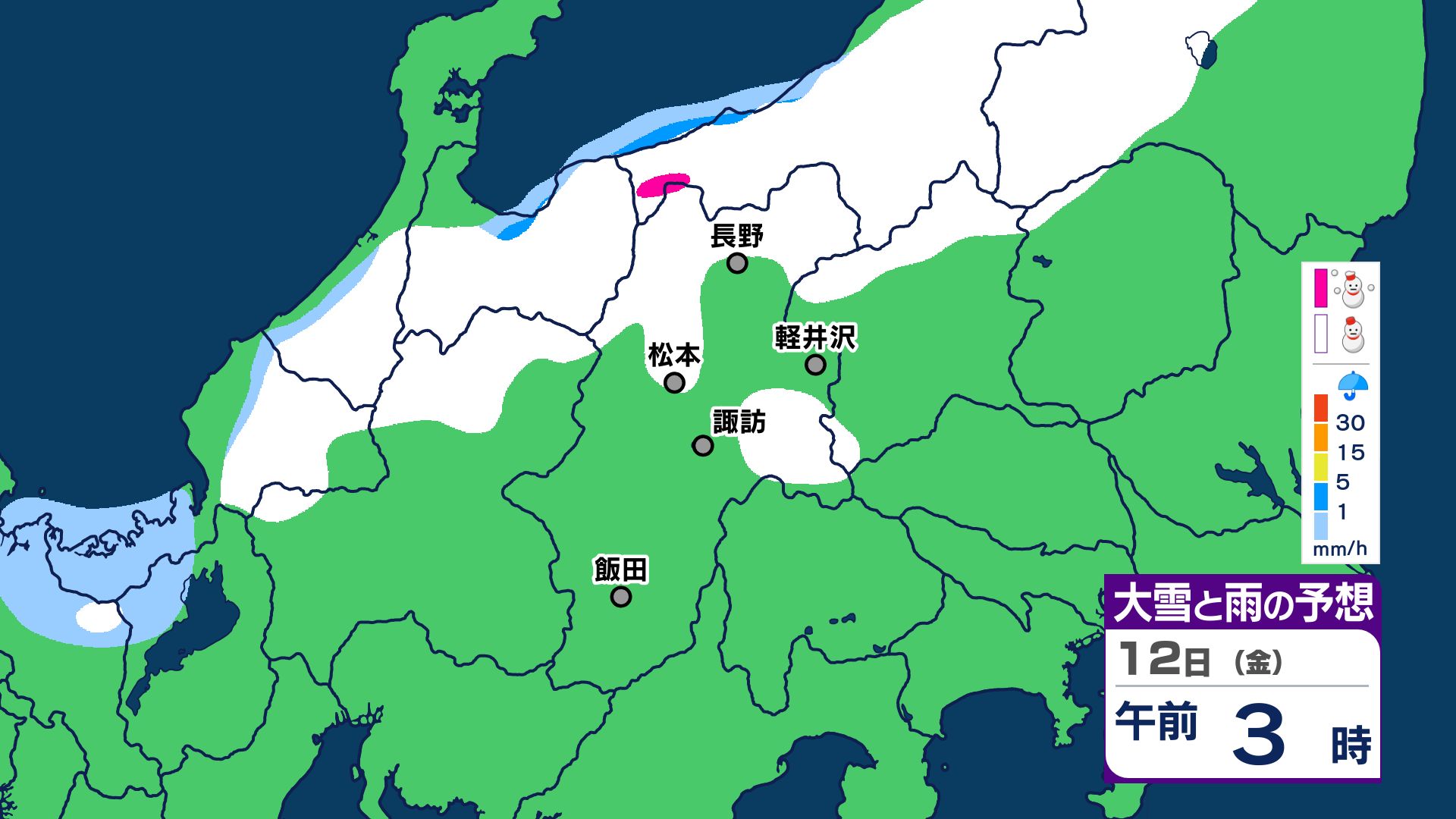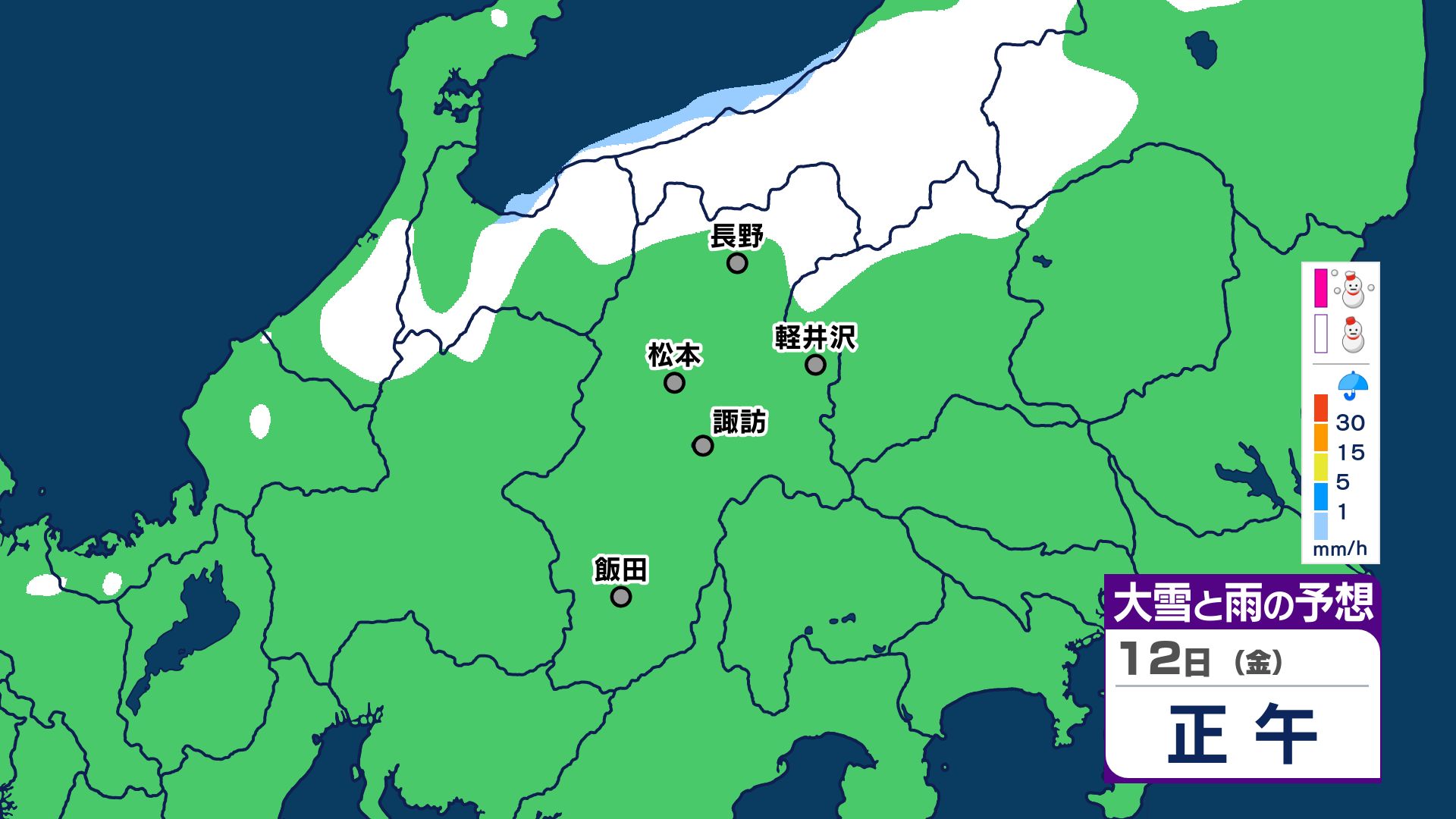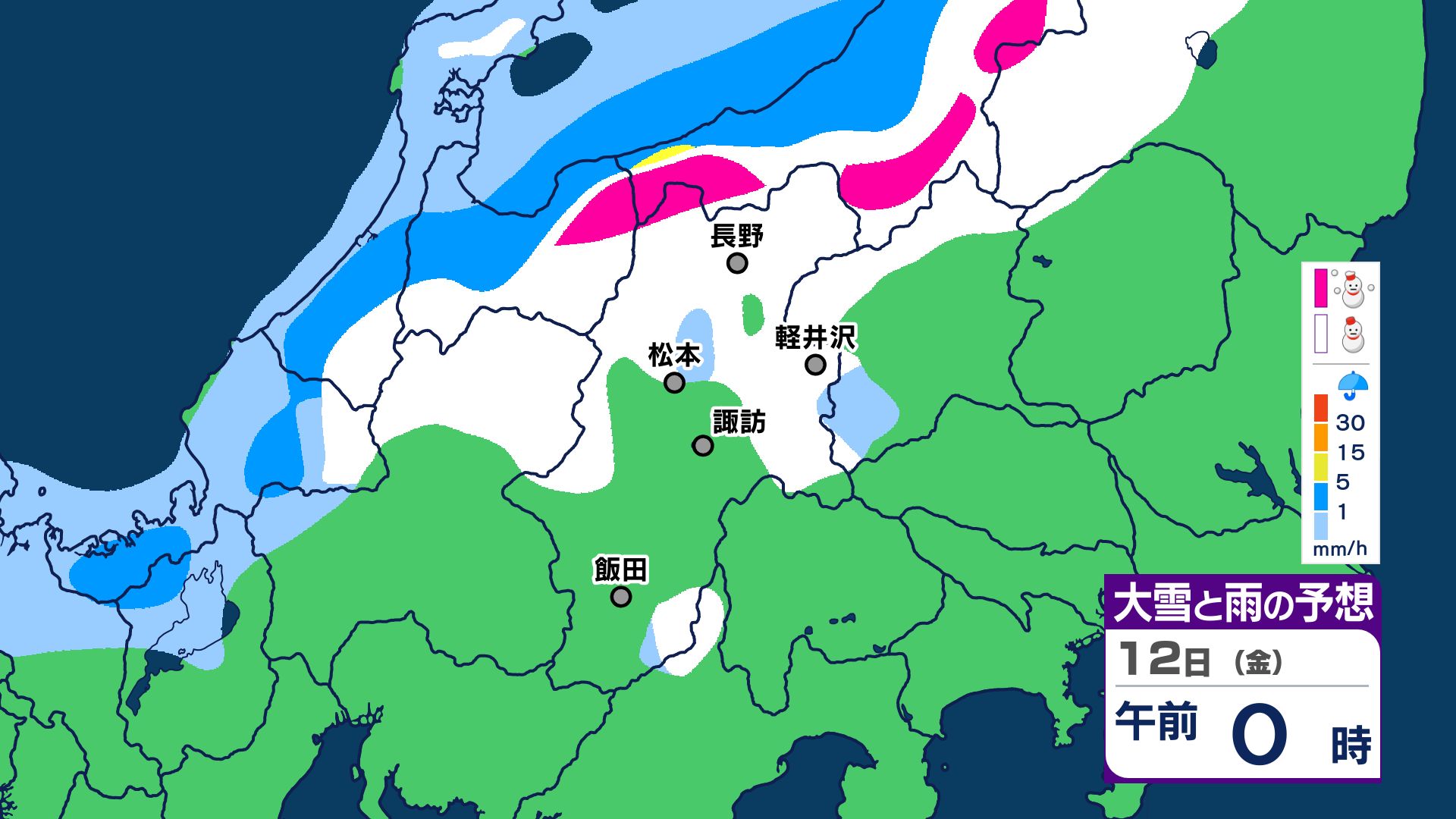 【大雪情報】あす12日は「警報級の大雪」の可能性 長野県内は路面の凍結や交通障害に十分注意【1時間ごとの雪のシミュレーション掲載】