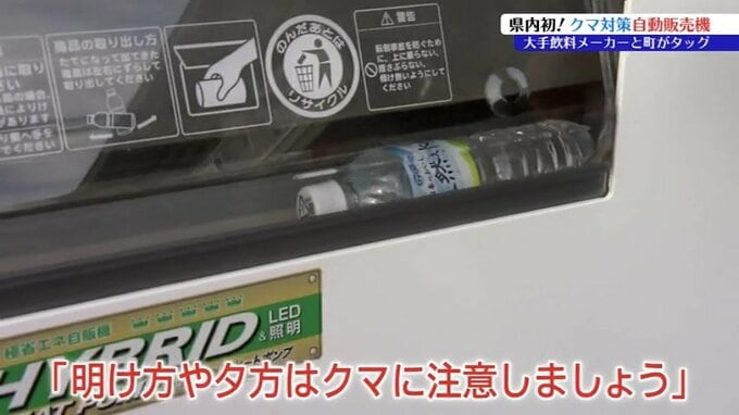 大手飲料メーカーと町がタッグを組んでクマの策を呼びかける自動販売機が11日に岩手県紫波町に設置されました。