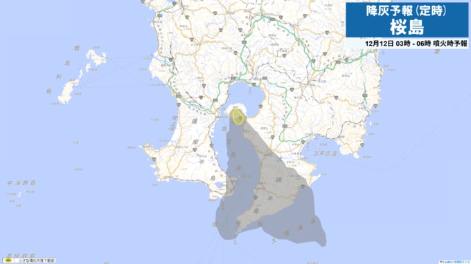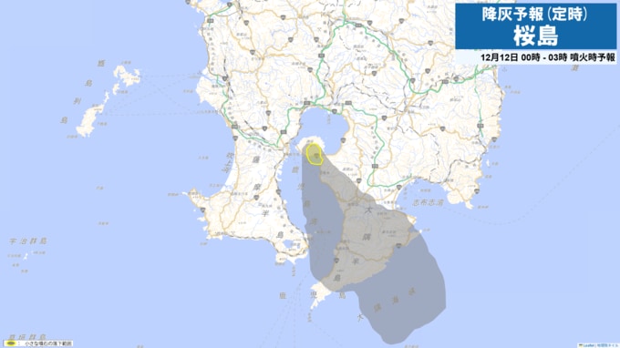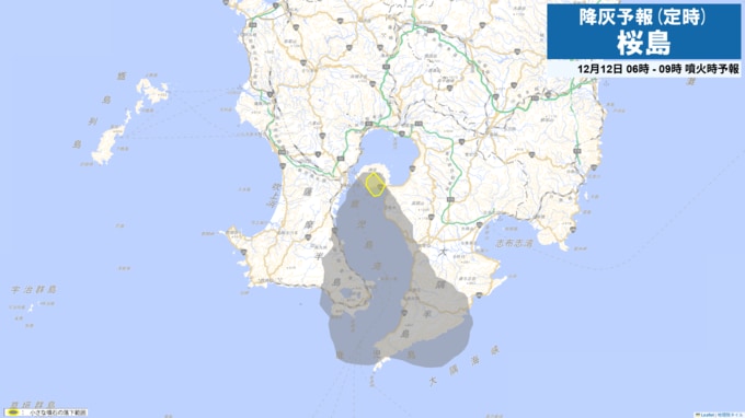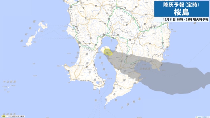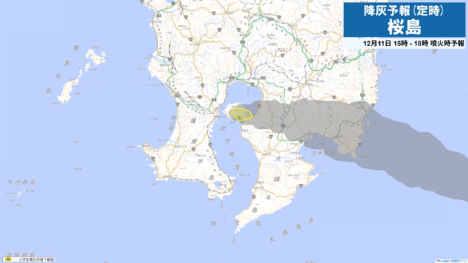 桜島降灰予報(定時)灰が予想されるエリアと時間帯を確認