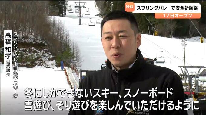 本格的なスキーシーズンが近づいてきました。スプリングバレー仙台泉スキー場で17日のオープンを前に安全祈願祭が行われました。