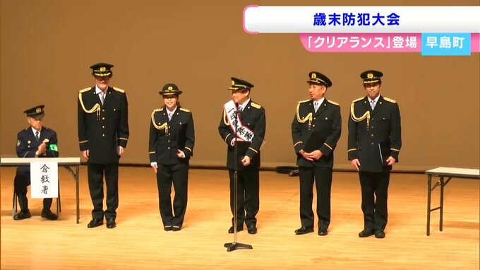 防犯大会は、地域の防犯ボランティアらが集まり、年末に増加する事故や犯罪を防ぐ意識を高めようと毎年行われているものです。