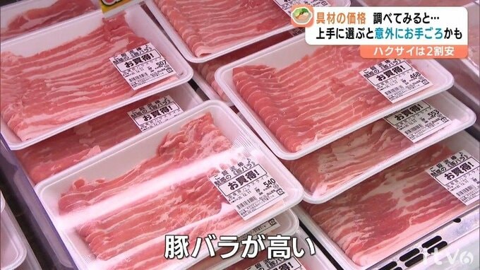 脂の乗った「豚バラ肉」は、鍋の満足度を左右する人気者ですが、去年と比べて2割ほどの値上がり。