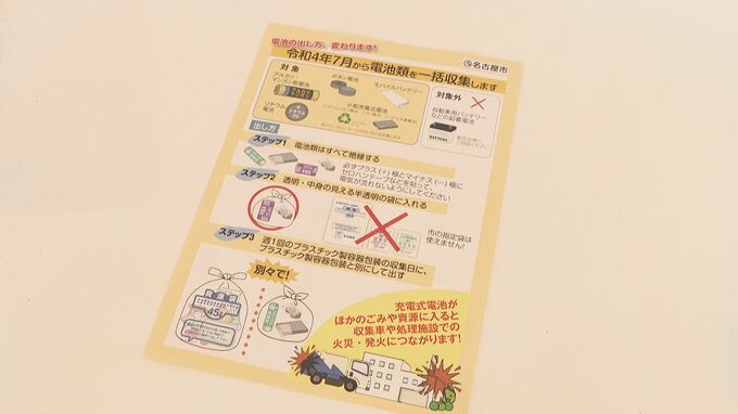 名古屋市では、電池類はほかのごみと分けて出すルールですが、不燃ごみや可燃ごみに交じって捨てられると、処理施設の火災につながる恐れがあるのです。