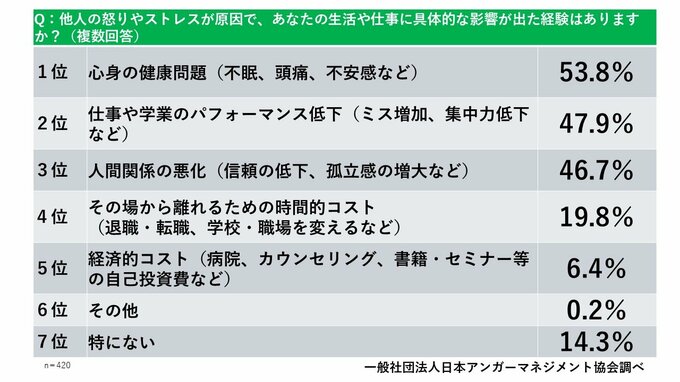 今年、日本人を最もイライラさせたのは…「人間関係」 不眠・頭痛・不安…53.8%が“怒り”による健康被害も経験 最も多い怒りへの対処法は「黙る・我慢する」…“我慢”の文化が拡大要因か 2位「物価高」、3位は「政治不信」【2025年イライラ大賞】 山陰放送 2025年12月11日(木) 16:56 国内