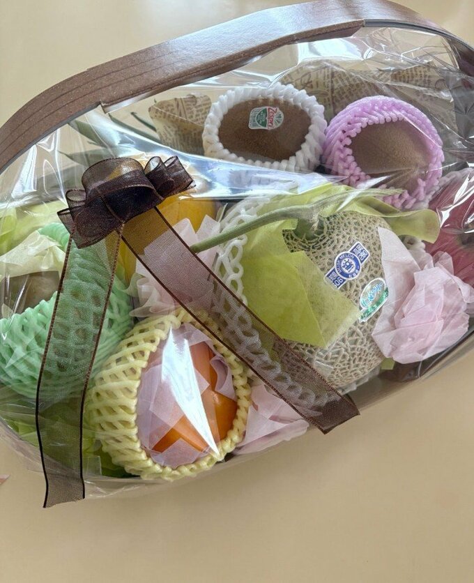 「りんごをもう2個くらい買っておけばよかったな…」と思っていた矢先、インターホンが。届いたのは、なんとモニター当選したフルーツバスケットでした。この奇跡的なタイミングに、上原さんは「あんた、どこのセレブのお見舞いよ〜 とてもありがたいしタイミングが最高過ぎました」と、喜びを伝えています。