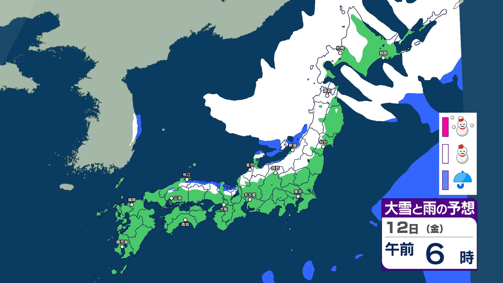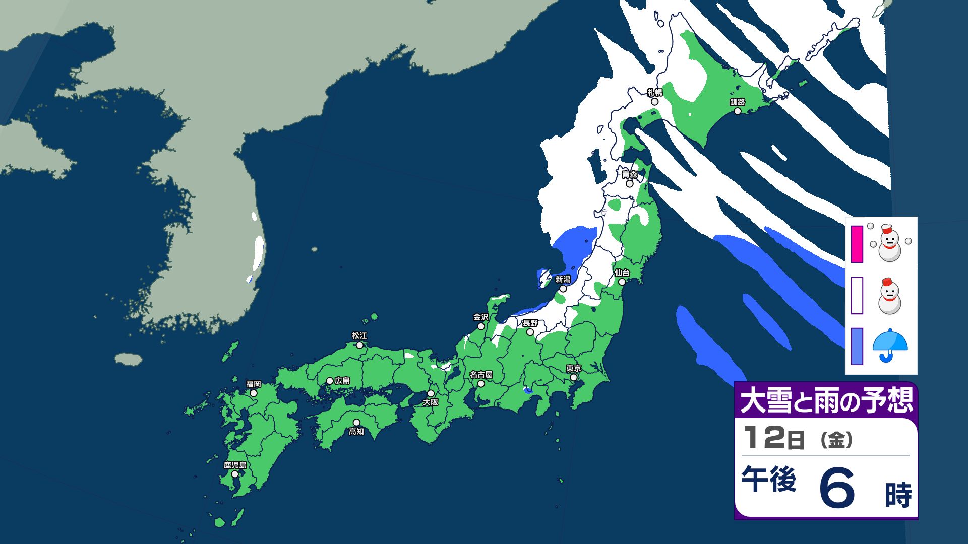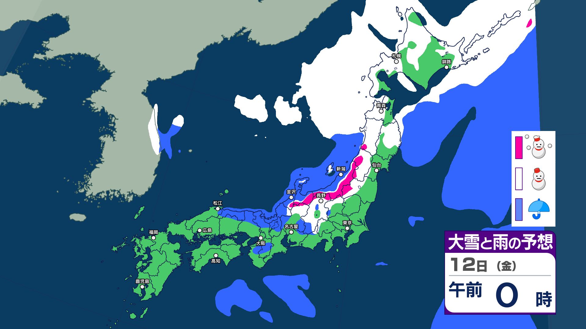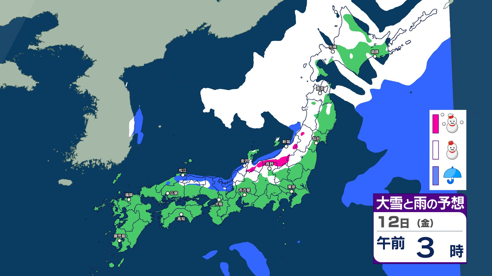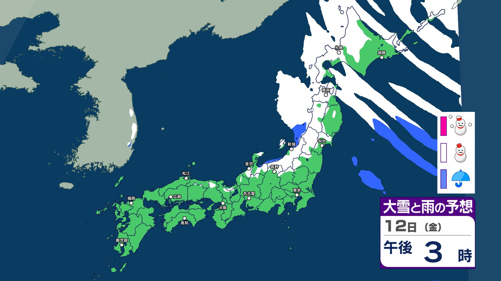 3. 【大雪情報】あす12日にかけて大雪注意 24時間予想降雪量は東北70cm・北海道50cm・関東甲信40cm 14日~15日は北日本~西日本で荒れた天気 警報級の大雪のおそれ【雪と雨のシミュレーション 16日まで掲載】