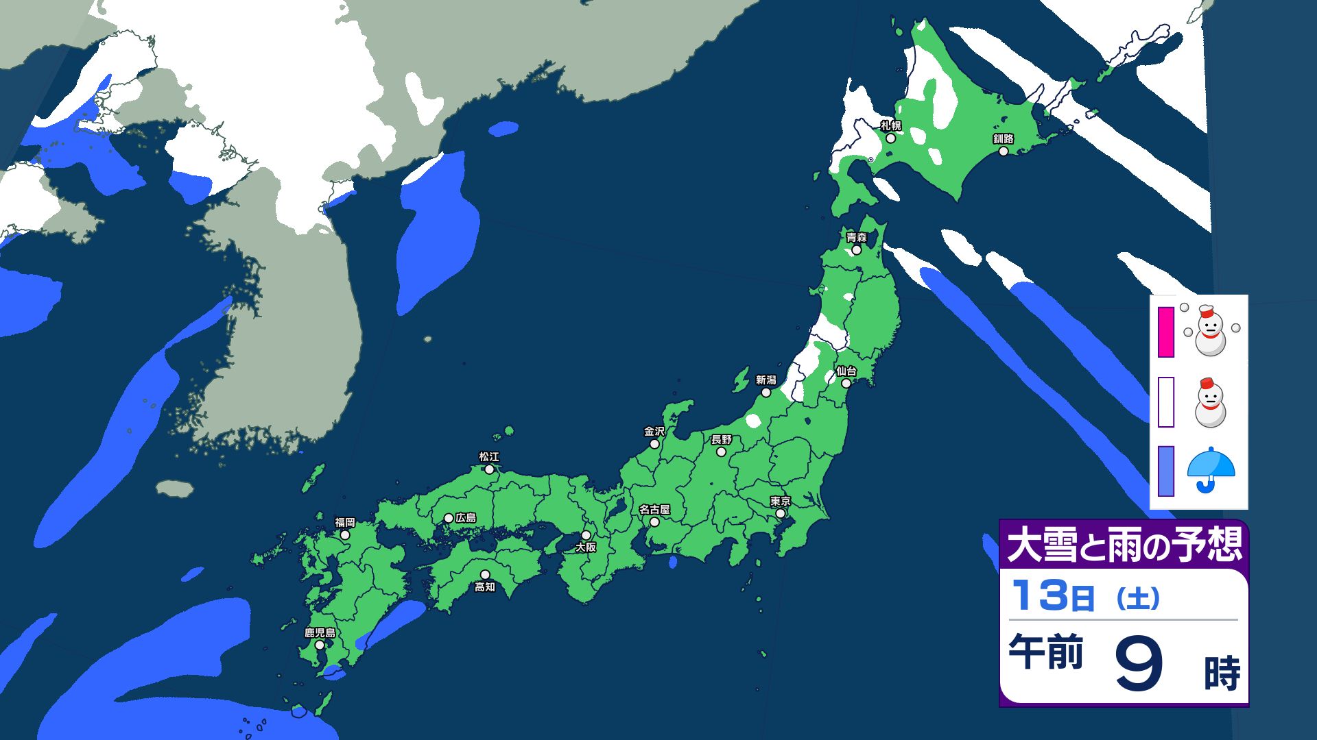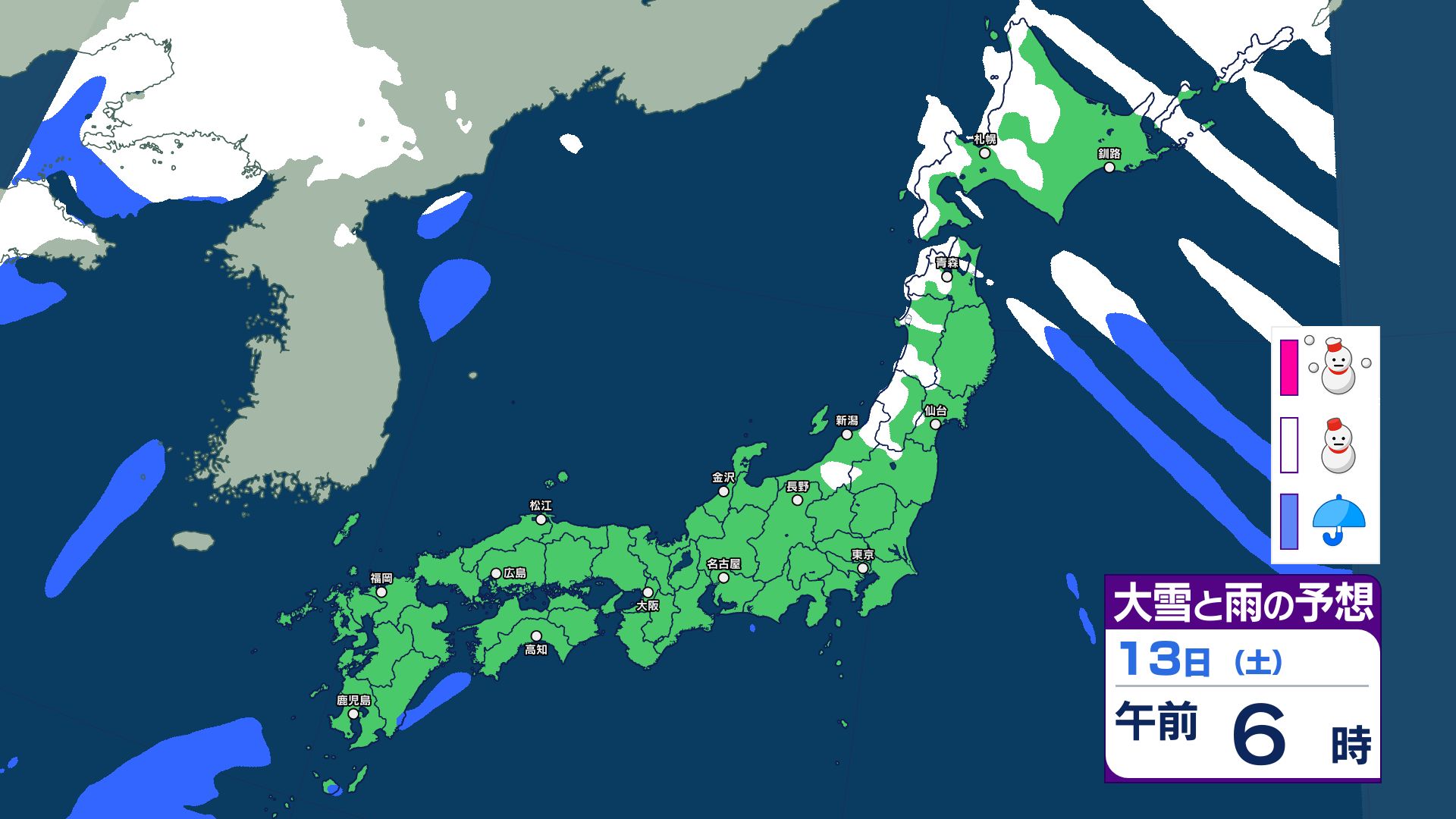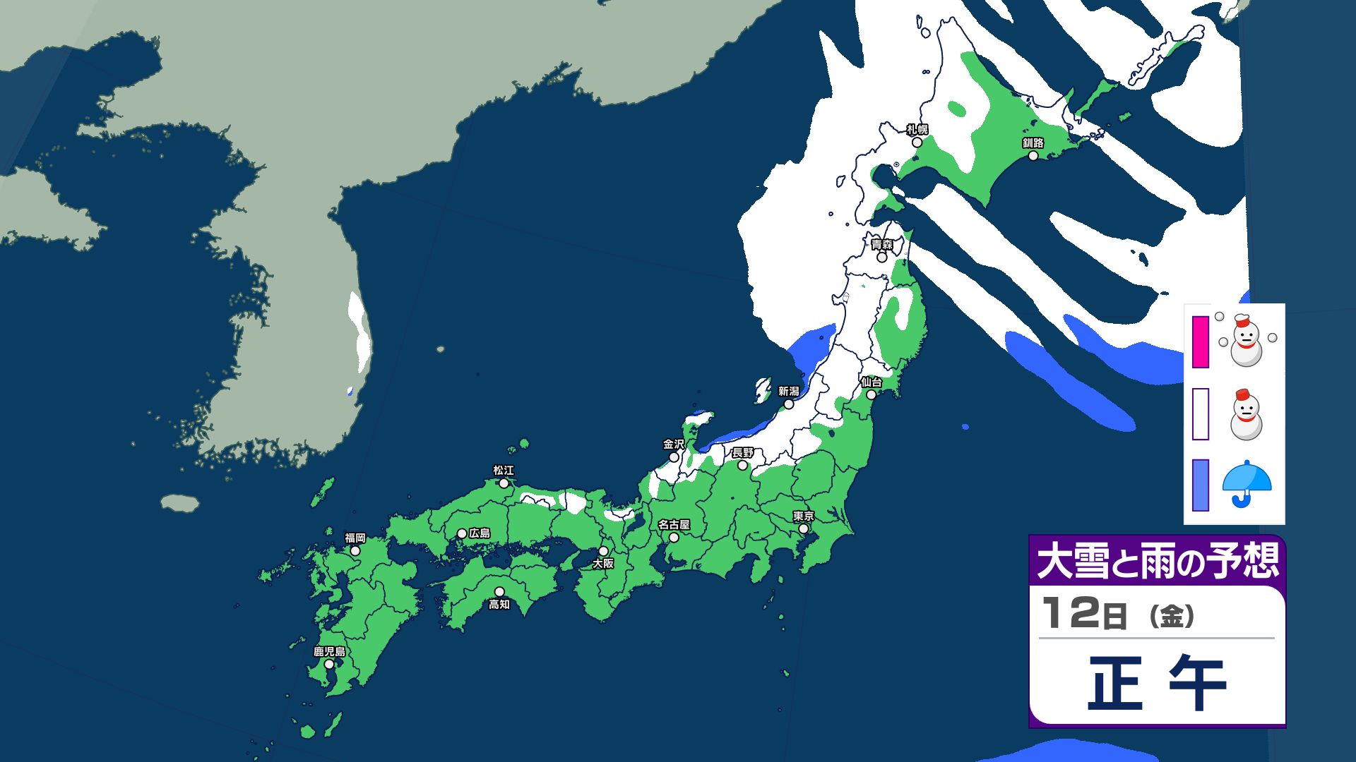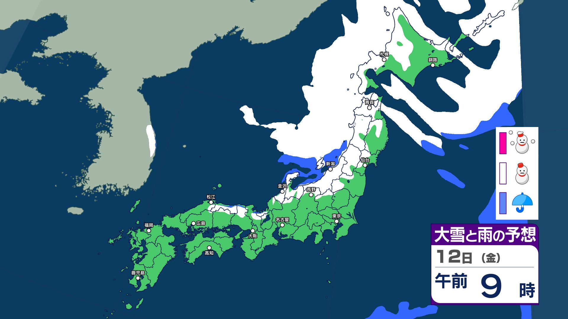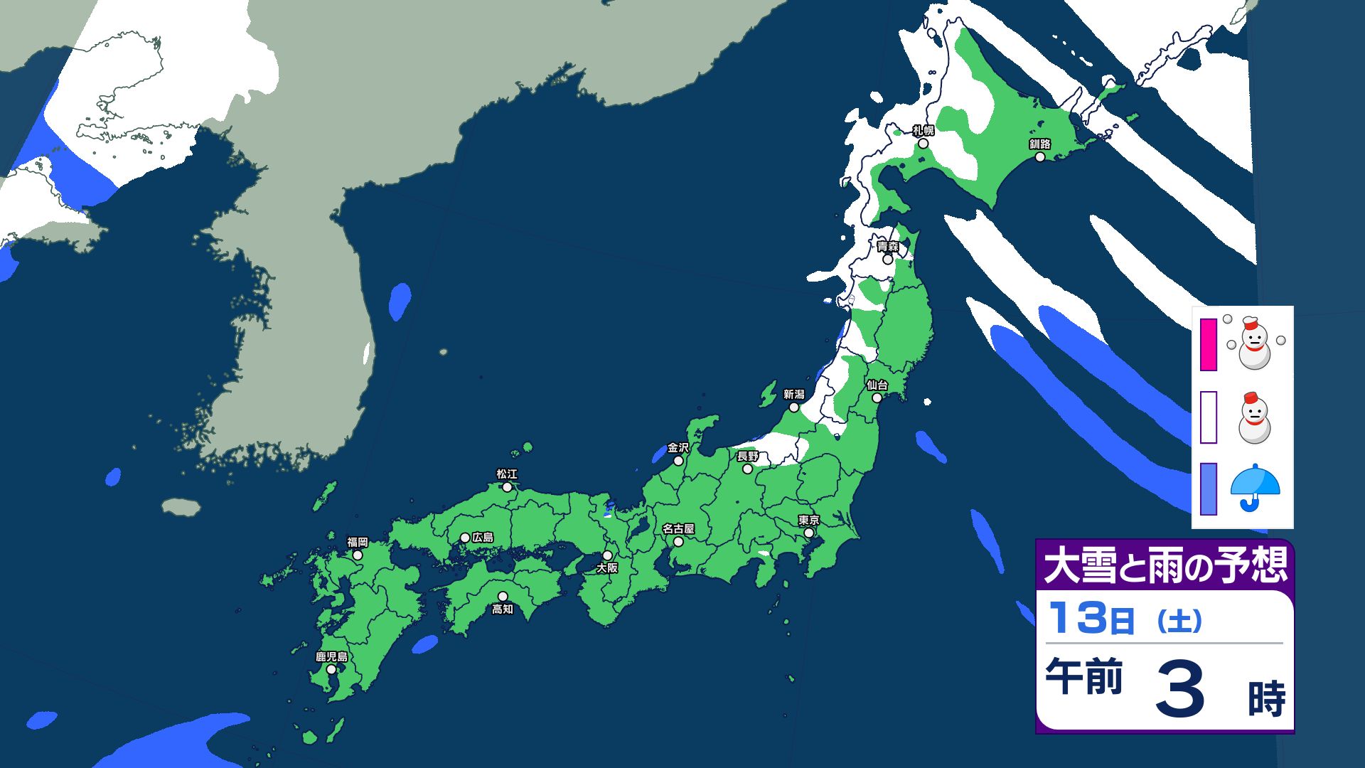 3. 【大雪情報】あす12日にかけて大雪注意 24時間予想降雪量は東北70cm・北海道50cm・関東甲信40cm 14日~15日は北日本~西日本で荒れた天気 警報級の大雪のおそれ【雪と雨のシミュレーション 16日まで掲載】