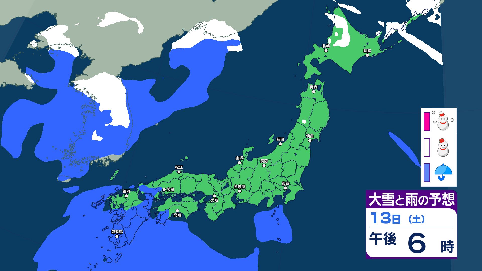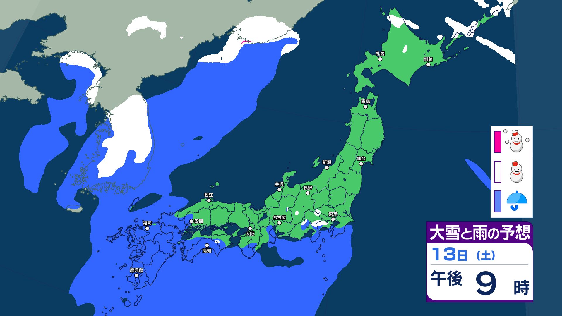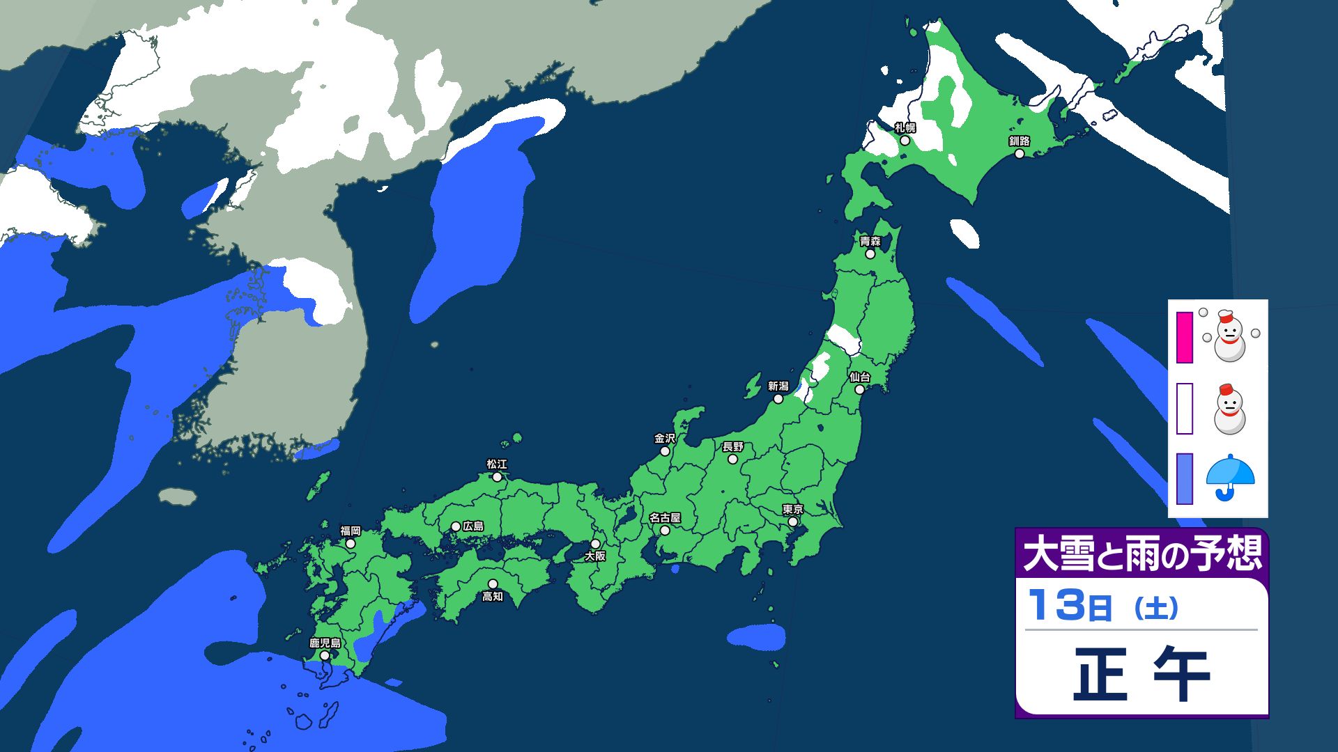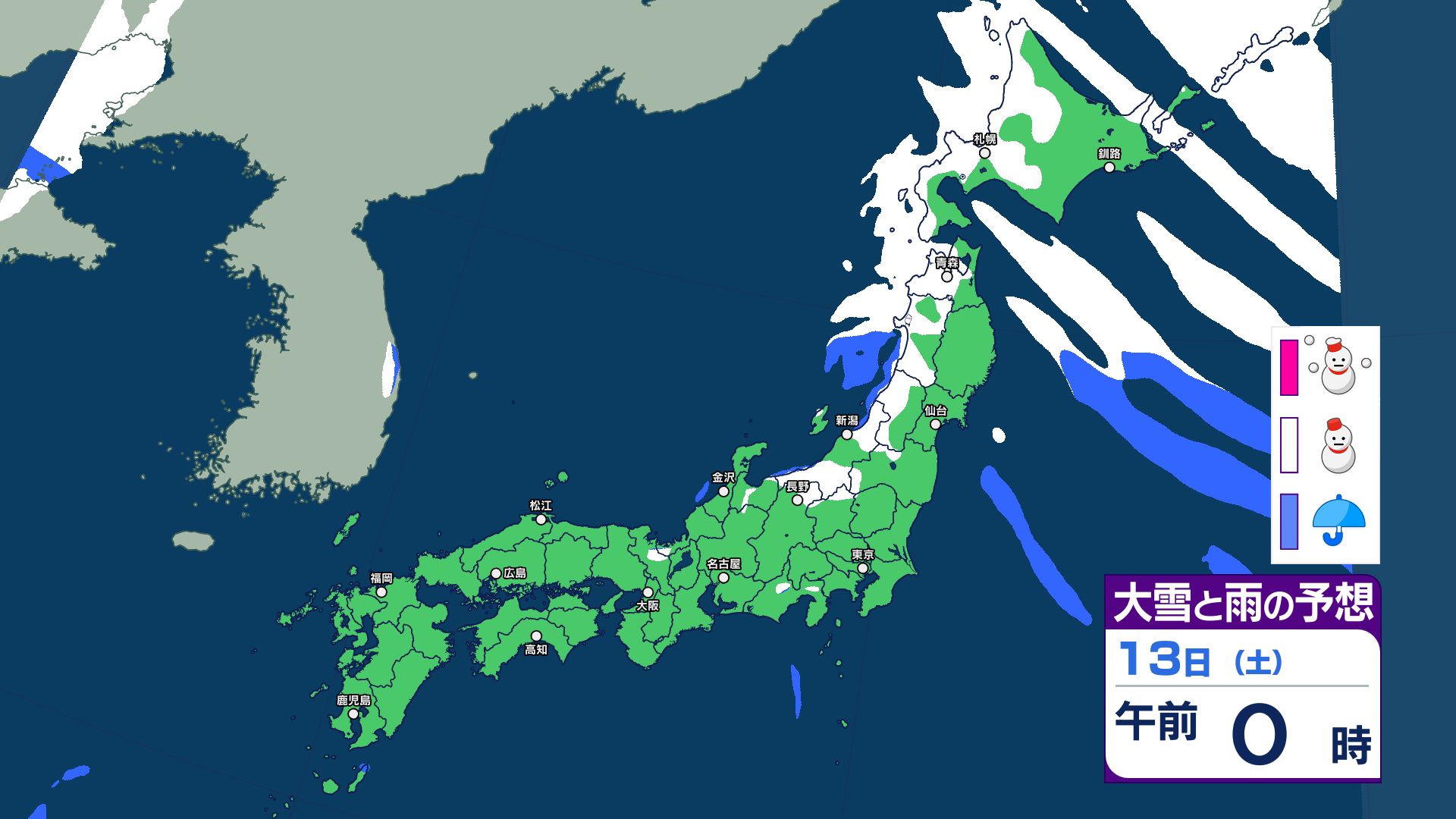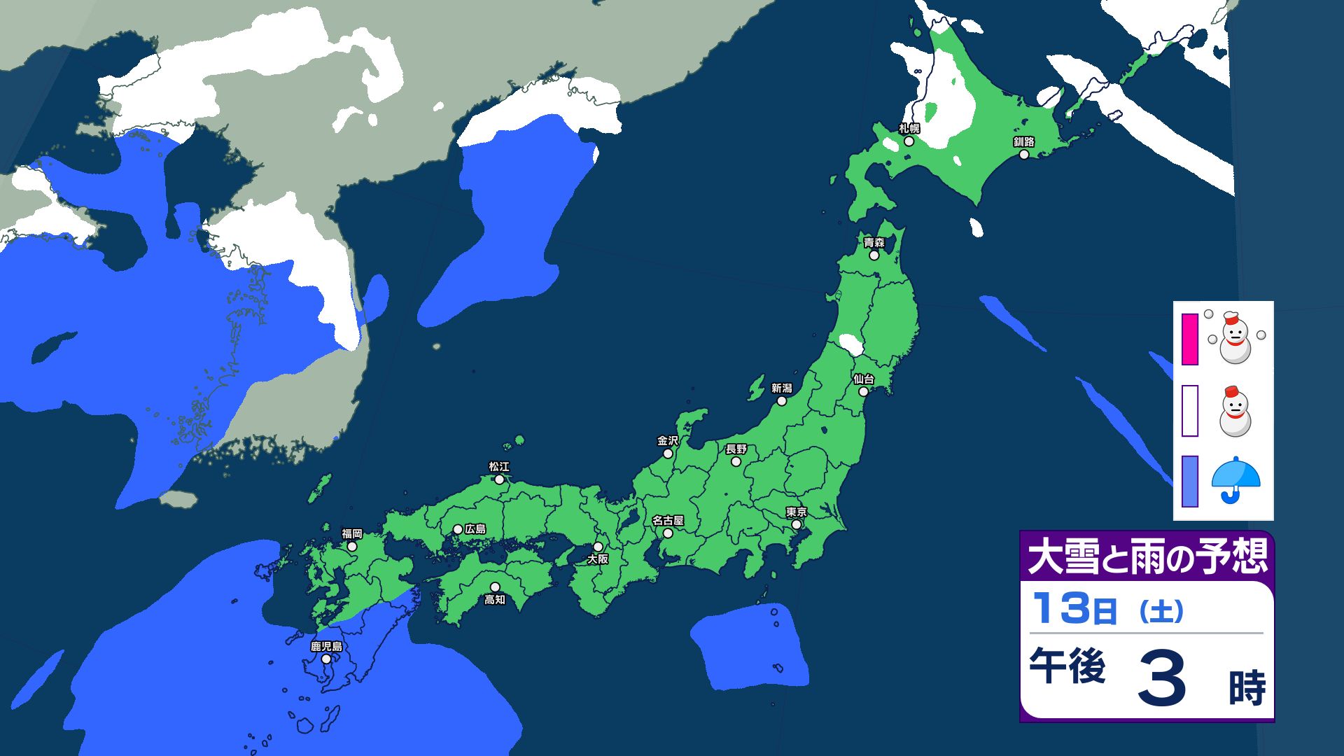 3. 【大雪情報】あす12日にかけて大雪注意 24時間予想降雪量は東北70cm・北海道50cm・関東甲信40cm 14日~15日は北日本~西日本で荒れた天気 警報級の大雪のおそれ【雪と雨のシミュレーション 16日まで掲載】
