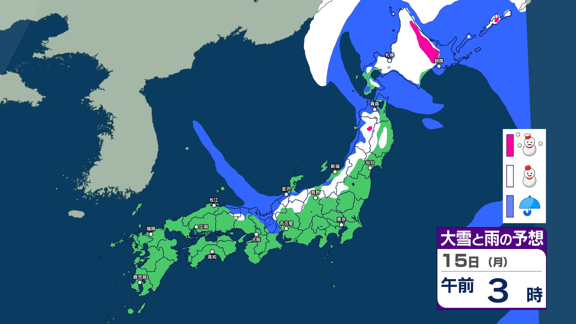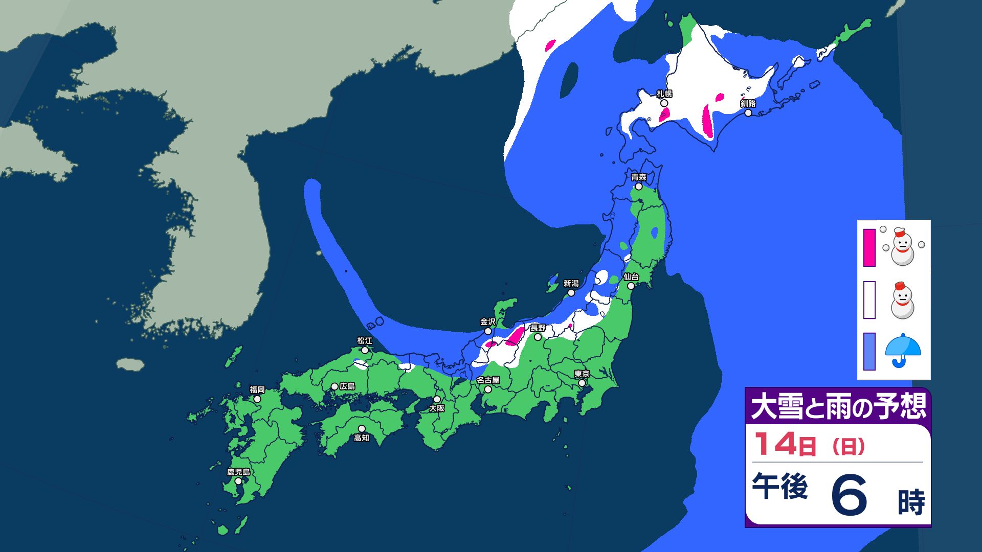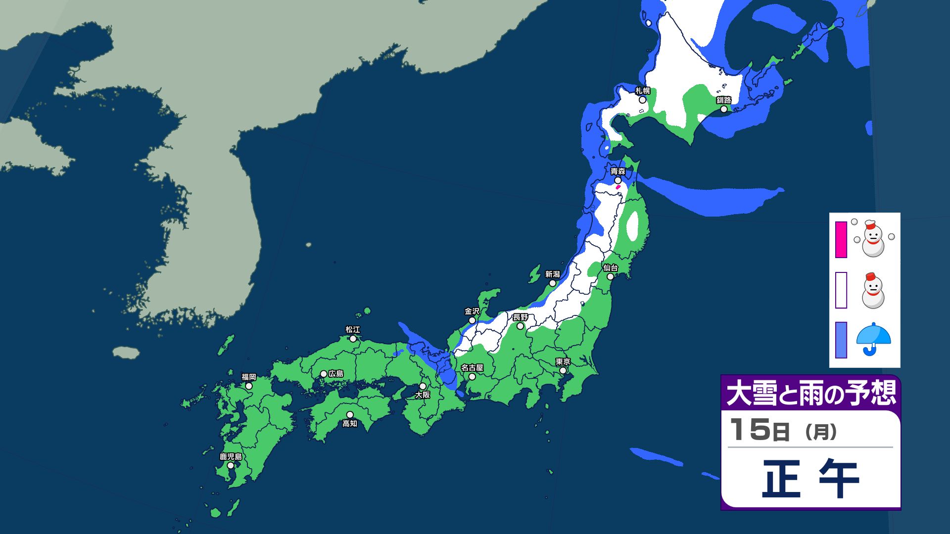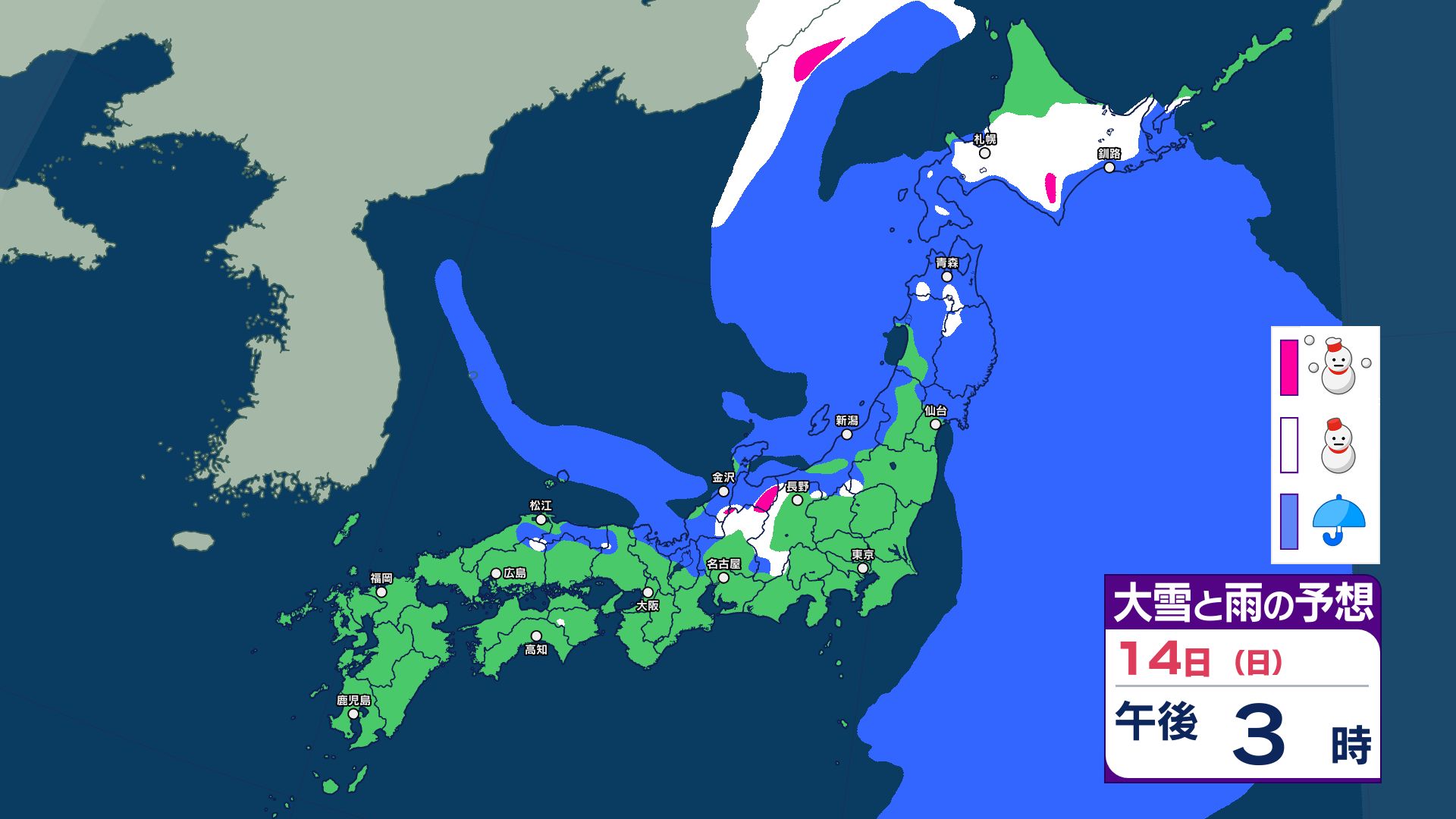 3. 【大雪情報】あす12日にかけて大雪注意 24時間予想降雪量は東北70cm・北海道50cm・関東甲信40cm 14日~15日は北日本~西日本で荒れた天気 警報級の大雪のおそれ【雪と雨のシミュレーション 16日まで掲載】