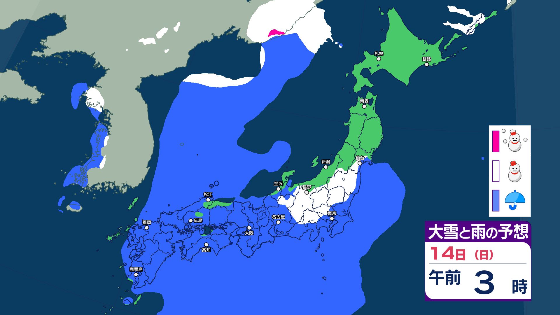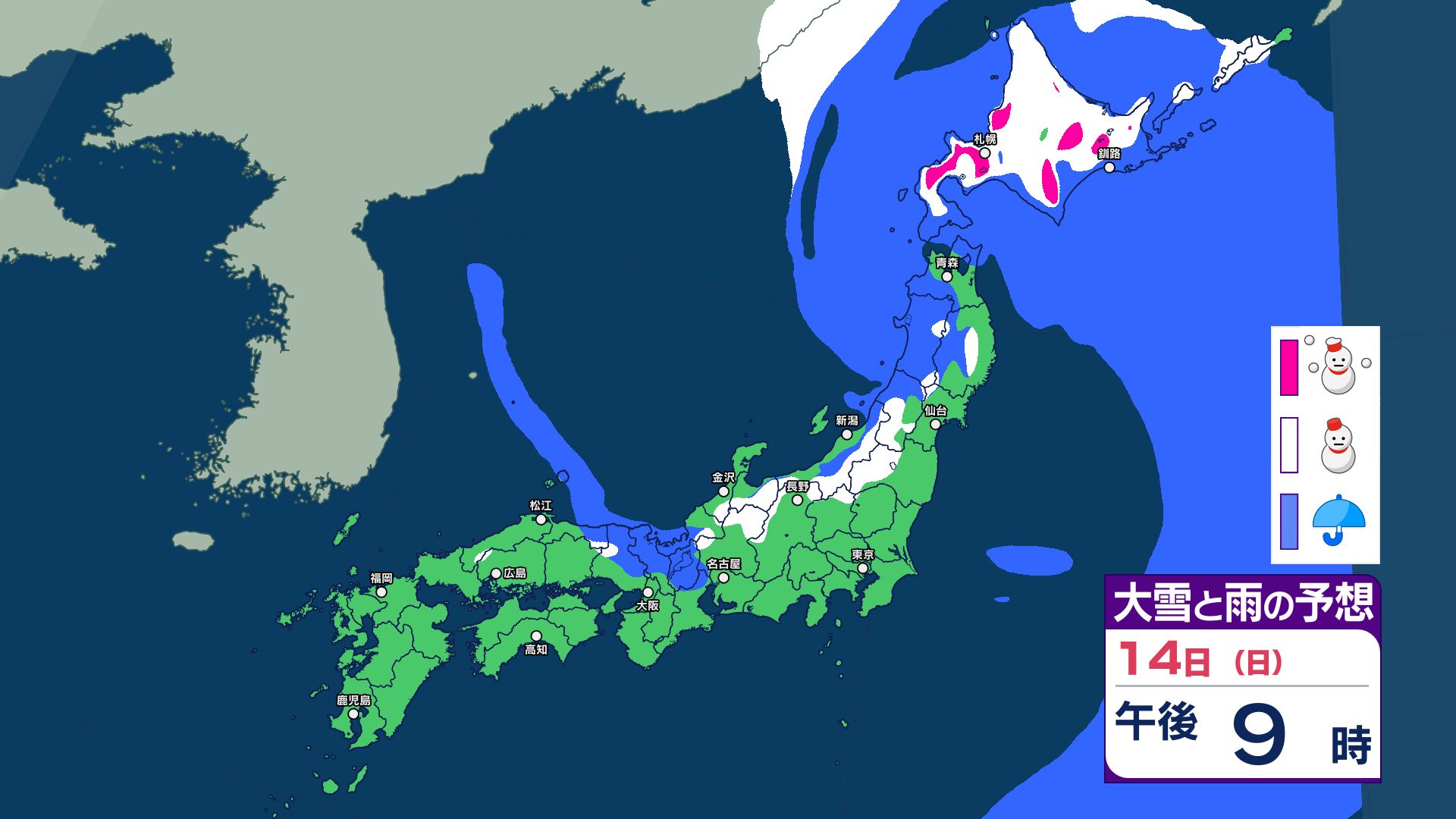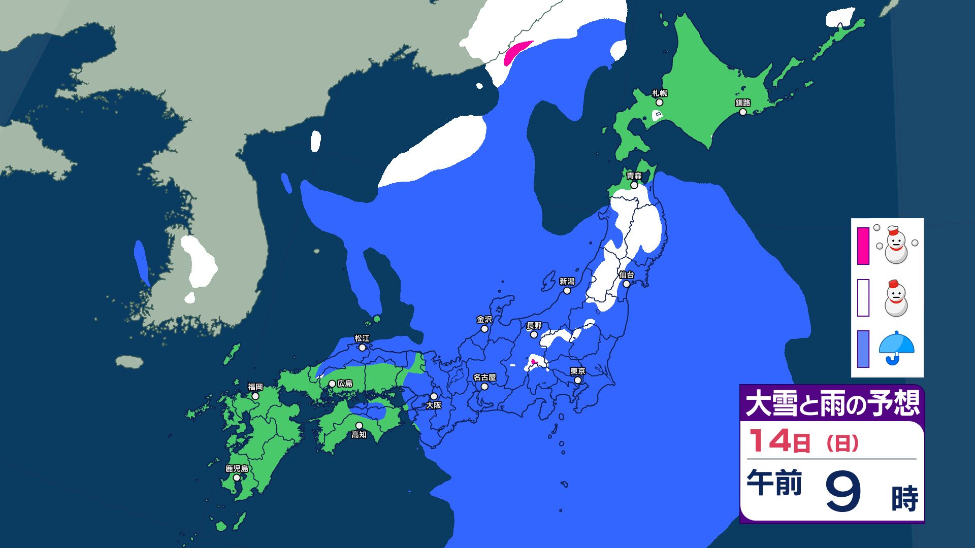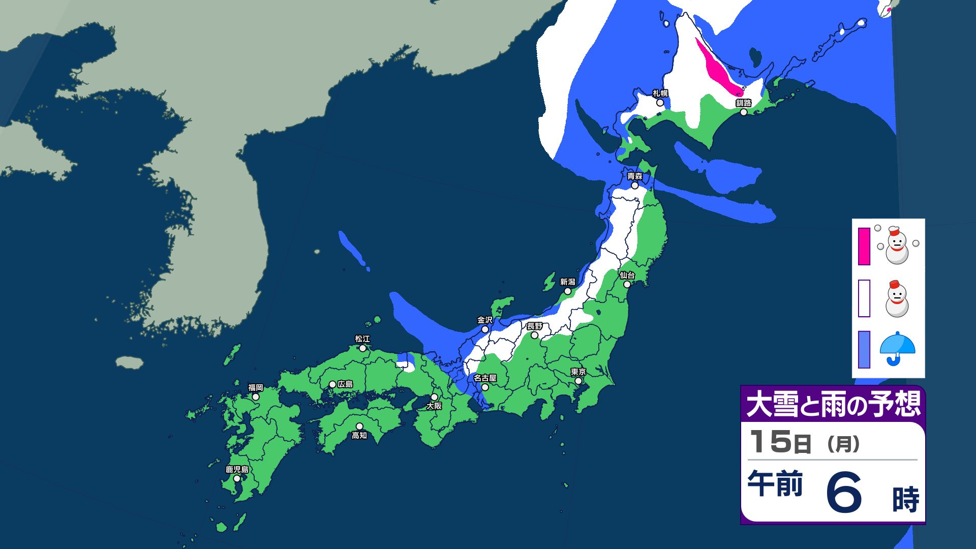 3. 【大雪情報】あす12日にかけて大雪注意 24時間予想降雪量は東北70cm・北海道50cm・関東甲信40cm 14日~15日は北日本~西日本で荒れた天気 警報級の大雪のおそれ【雪と雨のシミュレーション 16日まで掲載】