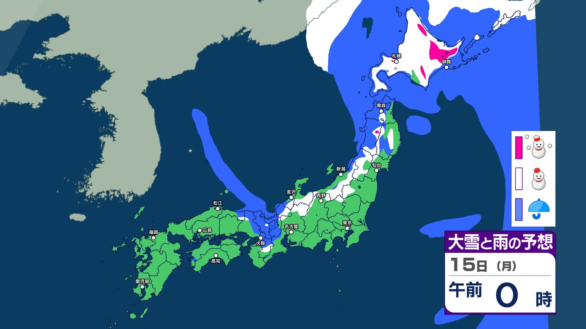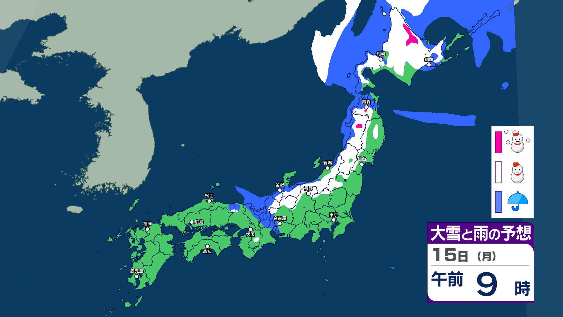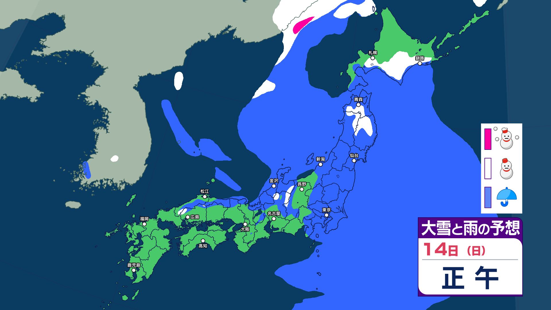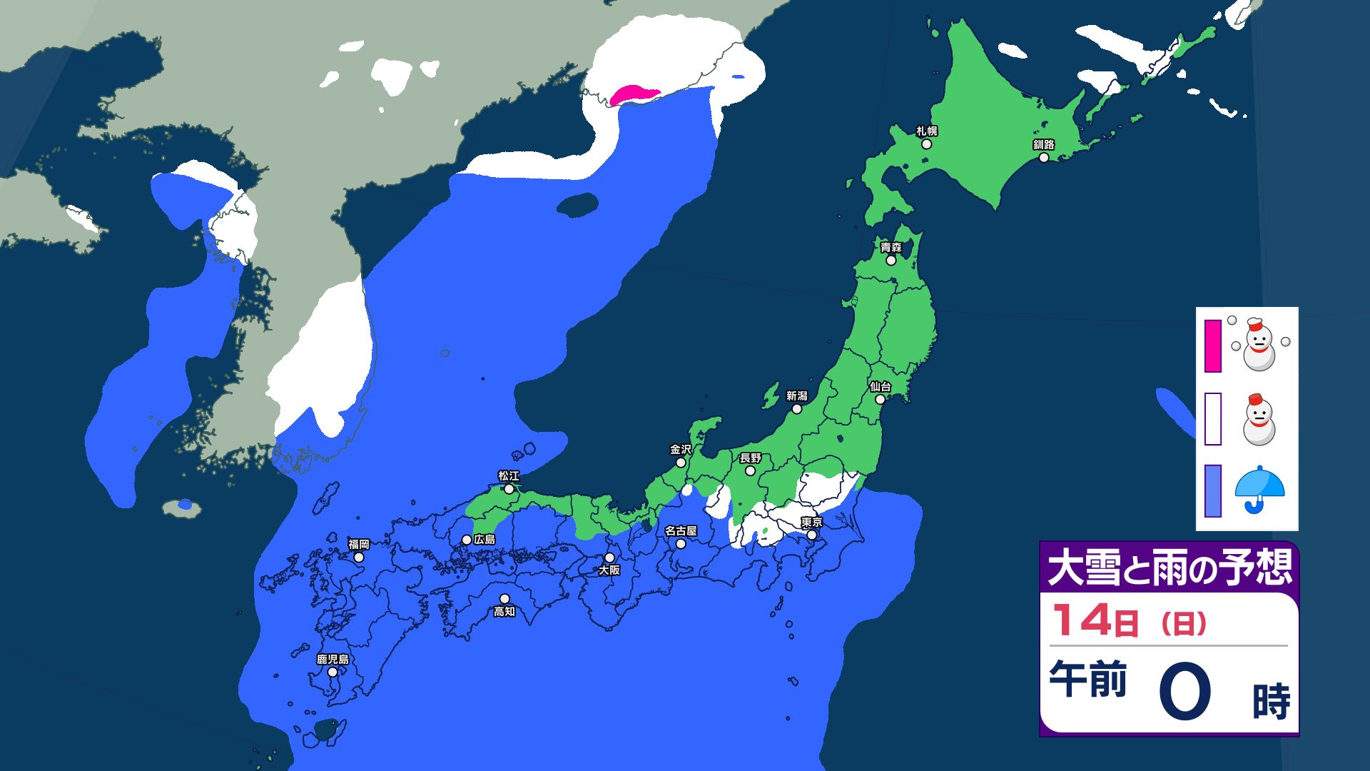 3. 【大雪情報】あす12日にかけて大雪注意 24時間予想降雪量は東北70cm・北海道50cm・関東甲信40cm 14日~15日は北日本~西日本で荒れた天気 警報級の大雪のおそれ【雪と雨のシミュレーション 16日まで掲載】