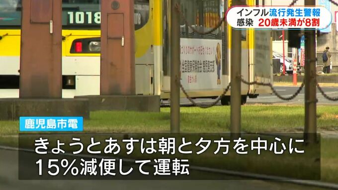 鹿児島市電は運転士96人のうち、5人がインフルエンザに感染したほか、5人が体調不良で、11日と12日は朝と夕方を中心に15%減便して運転しています。