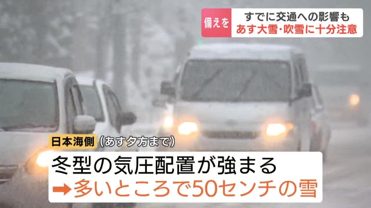 これから冬型の気圧配置が強まり、12日夕方までに日本海側の多いところで50センチの雪が降ると予想されていて、大雪や吹雪による交通障害に十分注意が必要です。