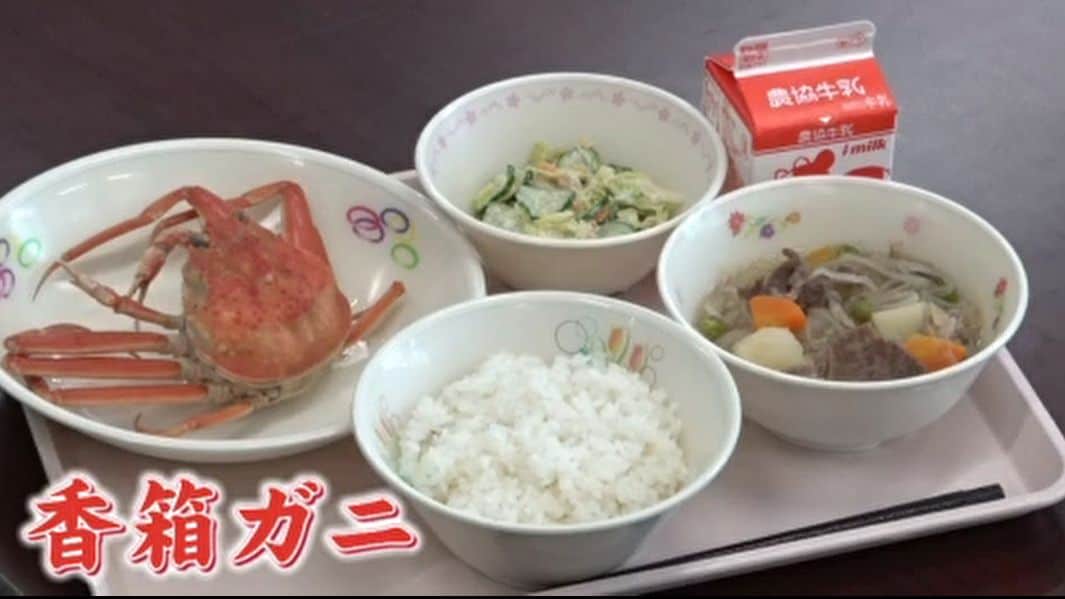 2年ぶりに復活した1人1杯の香箱ガニ給食。例年は小学6年生だけですが、地震の影響で去年は中止となったため、中学1年生の給食にもカニが提供されました。
