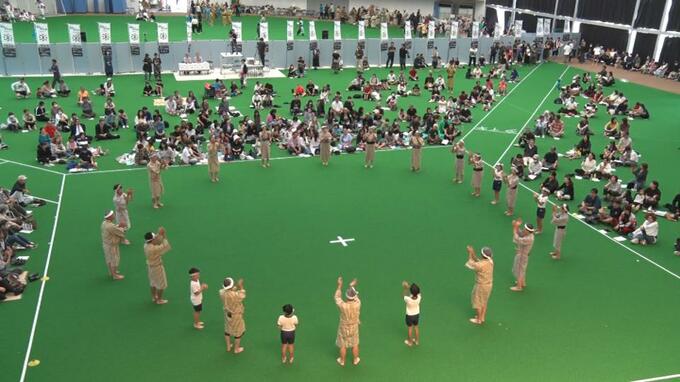 大地を蹴って力強く飛び跳ねる男性の踊りや、手をしなやかに動かす女性の踊りなど、各地域に伝わるクイチャーが披露されました。会場を訪れた人たちは伝統の踊りと華やかな創作舞踊の共演を楽しんでいました。