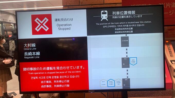 JR大村線は、踏切内で車が脱輪した影響で、一部区間で運転を見合わせています