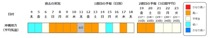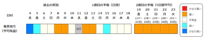 奄美地方と沖縄地方には高温に関する早期天候情報は発表されていません。