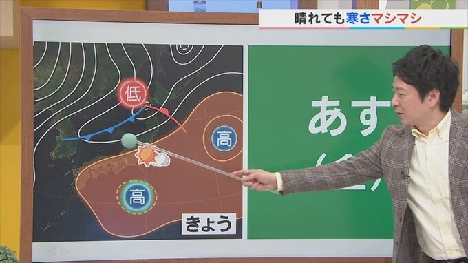 さらにこの低気圧からのびる前線は日本の南へと南下しますので、あすは山梨県はこの寒い空気のエリアに入り晴れても気温が上がりません。