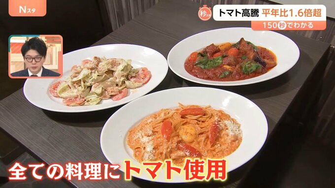 農林水産省によると、トマト1キロあたりの価格は1394円で、平年と比べて1.64倍に。“トマトショック”と呼ばれる現象が起きています。