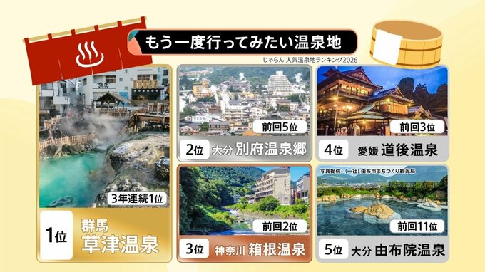 【もう一度行ってみたい温泉地】※じゃらん 人気温泉地ランキング2026