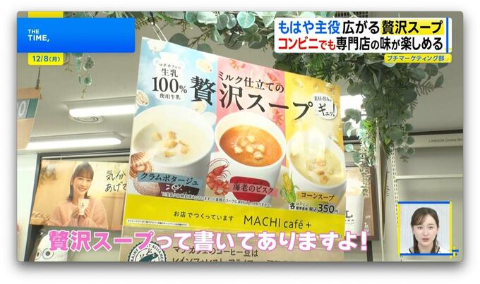 『ローソン』のマチカフェプラスでも、11月から「クラムポタージュ」「海老のビスク」「コーンスープ」(各350円)を発売。店内で1杯ずつホットミルクを注いで作るので、まるで専門店のような味わいです。