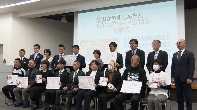 持続的な開発目標=SDGsの達成に向けた取り組みを行う岡山県内の企業などに贈られる「おかやましんきんSDGsアワード」の表彰式が開かれました。