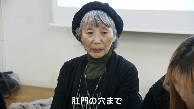 「違うの、まず身体検査。真っ裸にされるわけ。肛門の穴まで。私は肛門の穴は調べられませんでしたけどね。すっぽんぽんになるわけです」