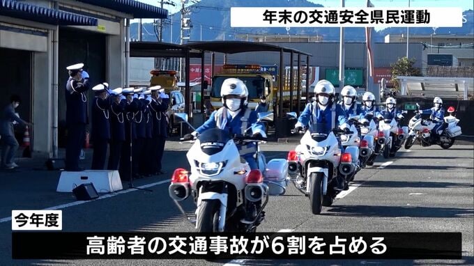 「年末交通安全運動」初日の12月15日、静岡県警の交通部隊の出発式が静岡市で行われました。2022年度の交通事故の6割を占める高齢者の事故を未然に防ぐため、白バイ15台とパトカー10台などが出発しました。街頭で…