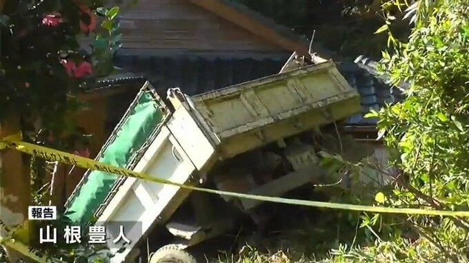 (記者)「トラックが転落し、住宅に突っ込んでいる」