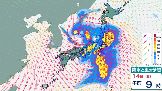 【14日(日)夜〜15日(月)雨・風シミュレーション】