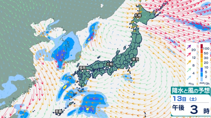3. 【大雨情報】日曜日は全国的に荒れた天気に 低気圧が発達し本州南岸から北へ【雨・風シミュレーション13日(土)~15日(月)】【雪シミュレーション12日(金)~15日(月)】雪と天気の情報
