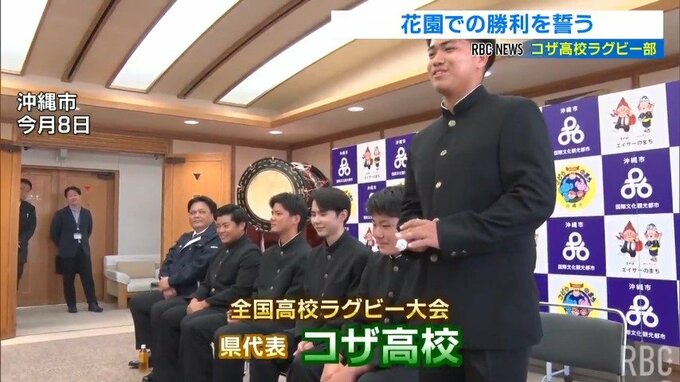 今月27日に大阪府で開幕する「全国高校ラグビー大会」への出場を前に、コザ高校ラグビー部が沖縄市役所を訪れ花園での勝利を誓いました。