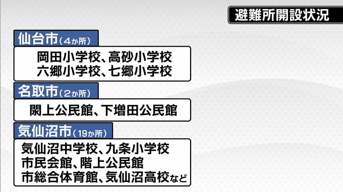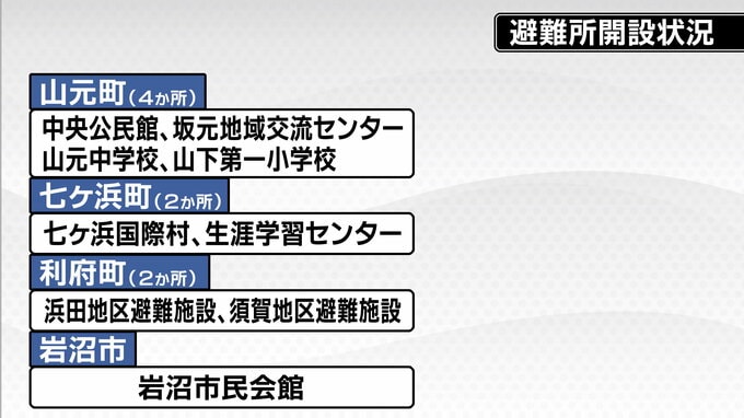 気仙沼中学校、九条小学校、市民会館、階上公民館、市総合体育館、気仙沼高校などあわせて19か所で避難所を開設、または開設の準備をしています。