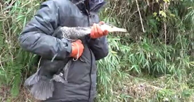 息子の達矢の喜びの声に続き、父親の寛之さんが立派な鵜を大事そうに抱え降りてきました。