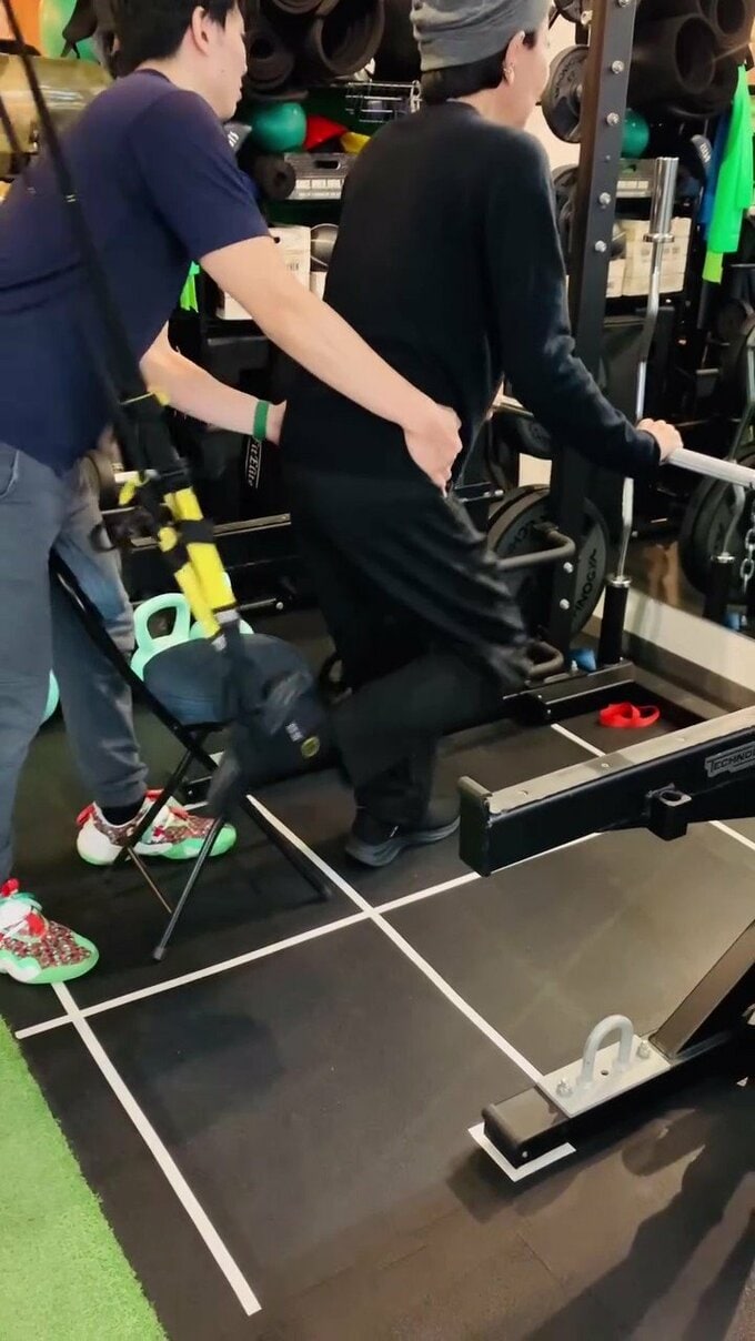 会見を終えた美川さんは2日後のきょう、インスタグラムを更新。「ど~も~ 美川よ~」と挨拶しつつ、動画を投稿しています。それは、ジムでトレーナーに付き添われながらの筋トレの様子。両手で身体前方のバーをつかんで身体を支えつつ、右脚を上からのベルトにかけて浮かせながら、左脚一本だけでバランスを取ってスクワットを続けています。