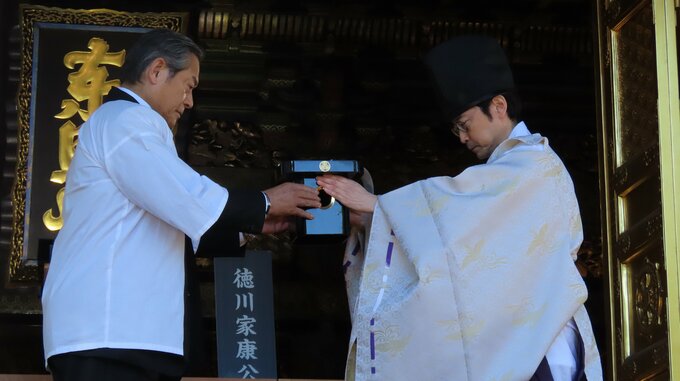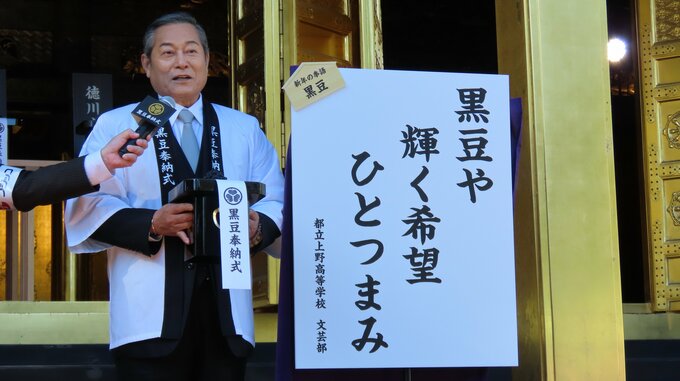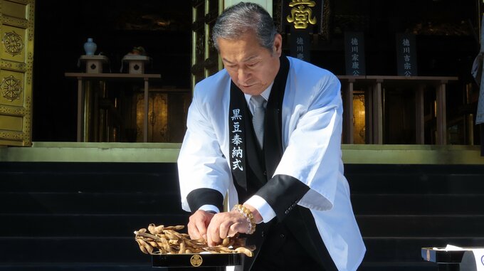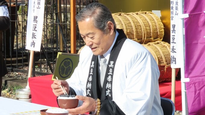 東京・上野東照宮にて、年末の風物詩「黒豆奉納式」が行われ、俳優の松平健さんが登壇しました。
