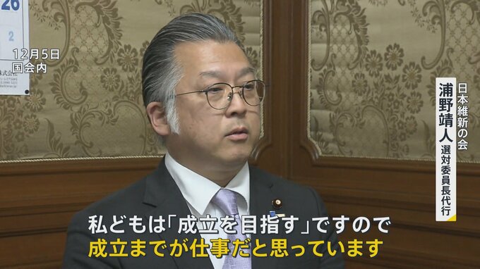 維新の浦野靖人・選対委員長代行は「私どもは『成立を目指す』ですので、成立までが仕事だと思っています」と、法案の成立に強い意欲を示した。
