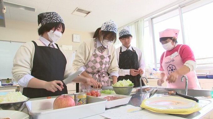 高校3年生が正しい食生活を学ぶ調理実習が山梨県笛吹市で行われました。この授業は卒業で生活環境が変わる高校3年生に食事の大切さを知ってもらおうと笛吹市の食生活改善推進員の指導で毎年行われています。