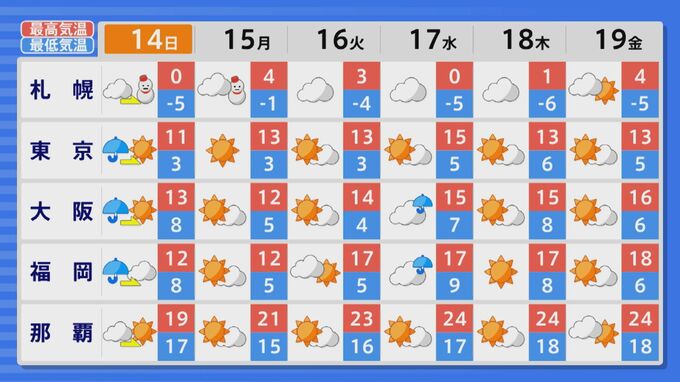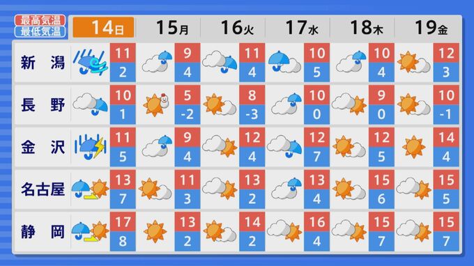 “2つの低気圧”が日本付近を進み急速に発達へ 14日(日)は九州から東北で雨や雪が降り荒れる天気のところも 関東も14日の日中は雨強まる 雪・雨と風シミュレーション 北陸放送 2025年12月12日(金) 16:22 国内 14日は、東北や北海道では雪の降り方が強まるところがあるでしょう。 北陸では、14日は雨風ともに強まりそうです。山地では雪が降るところもあるでしょう。 低気圧が急速に発達するため、14日は東北や北海道では暴風や暴風雪、高波に警戒してください。