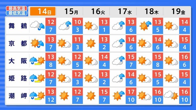 【東京首都圏でも雪の可能性】13日夜~14日にかけ関東・東海に“雪の影” 14⽇~15⽇頃は発達する低気圧の影響で北~東⽇本で荒れた天気「警報級の⼤雪や⼤⾬」恐れも【大雪シミュレーション・週間天気】 青森テレビ 2025年12月12日(金) 15:25 国内 【近畿】全国各地の天気予報・週間天気 ♦大雪・雨・風の予想シミュレーション ♦全国各地の天気予報・週間天気 ♦記事を最初から見る