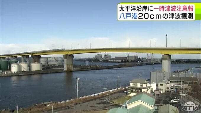 青森県沿岸では、八戸港で20cmの津波を観測しています。