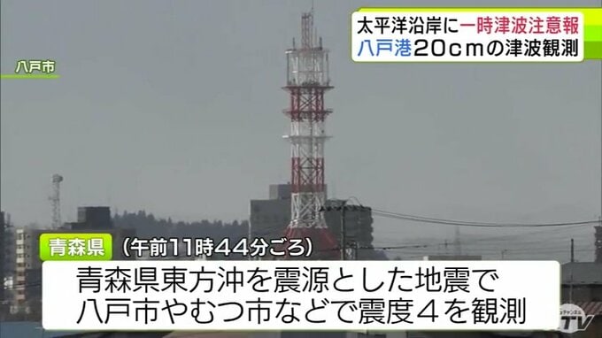 3. 【地震の最新状況まとめ】またも“青森地震”12日に青森県や北海道などで震度4観測 一時「津波注意報」も 八戸港では20cmの津波観測 平内町では80代女性が玄関で転倒してけが