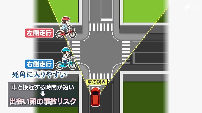 しかし、自転車が逆走したまま交差点に進入した場合、車の死角に入りやすくドライバーは気づきにくい状況になります。車と接近するまでの時間が短くなるため出合い頭の事故が起きるリスクが高まるのです。