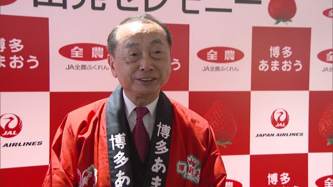 出発ゲートではセレモニーが行われ、空輸第1便に乗り合わせた乗客には、記念のあまおうが配られました。